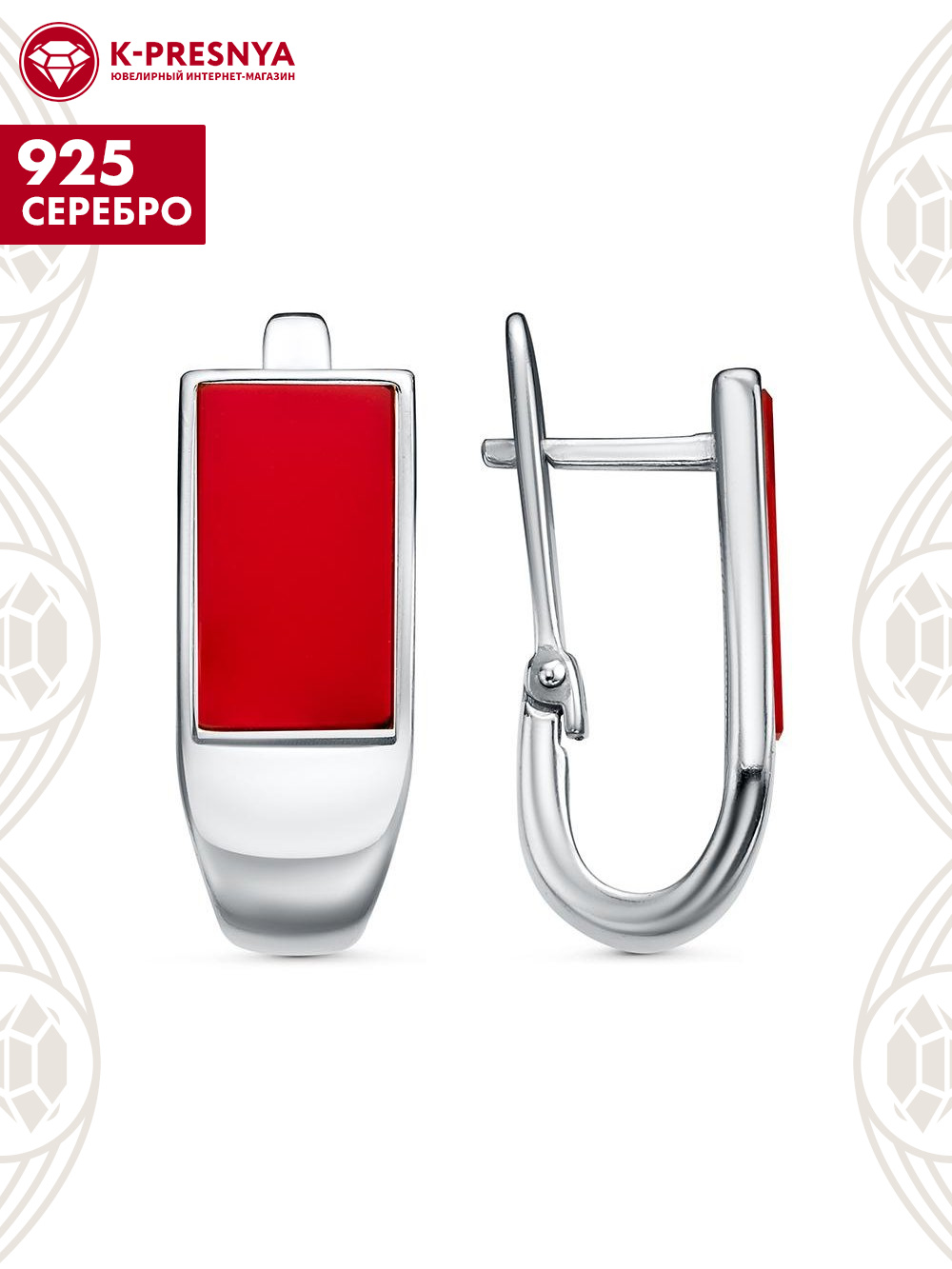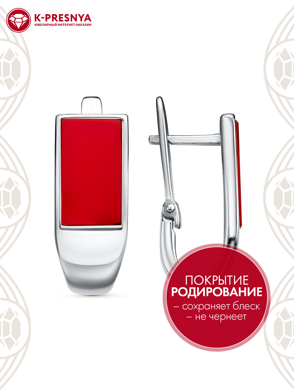 Серьги серебро 925 пробы, покрытие - родирование, вставка - искусственный коралл