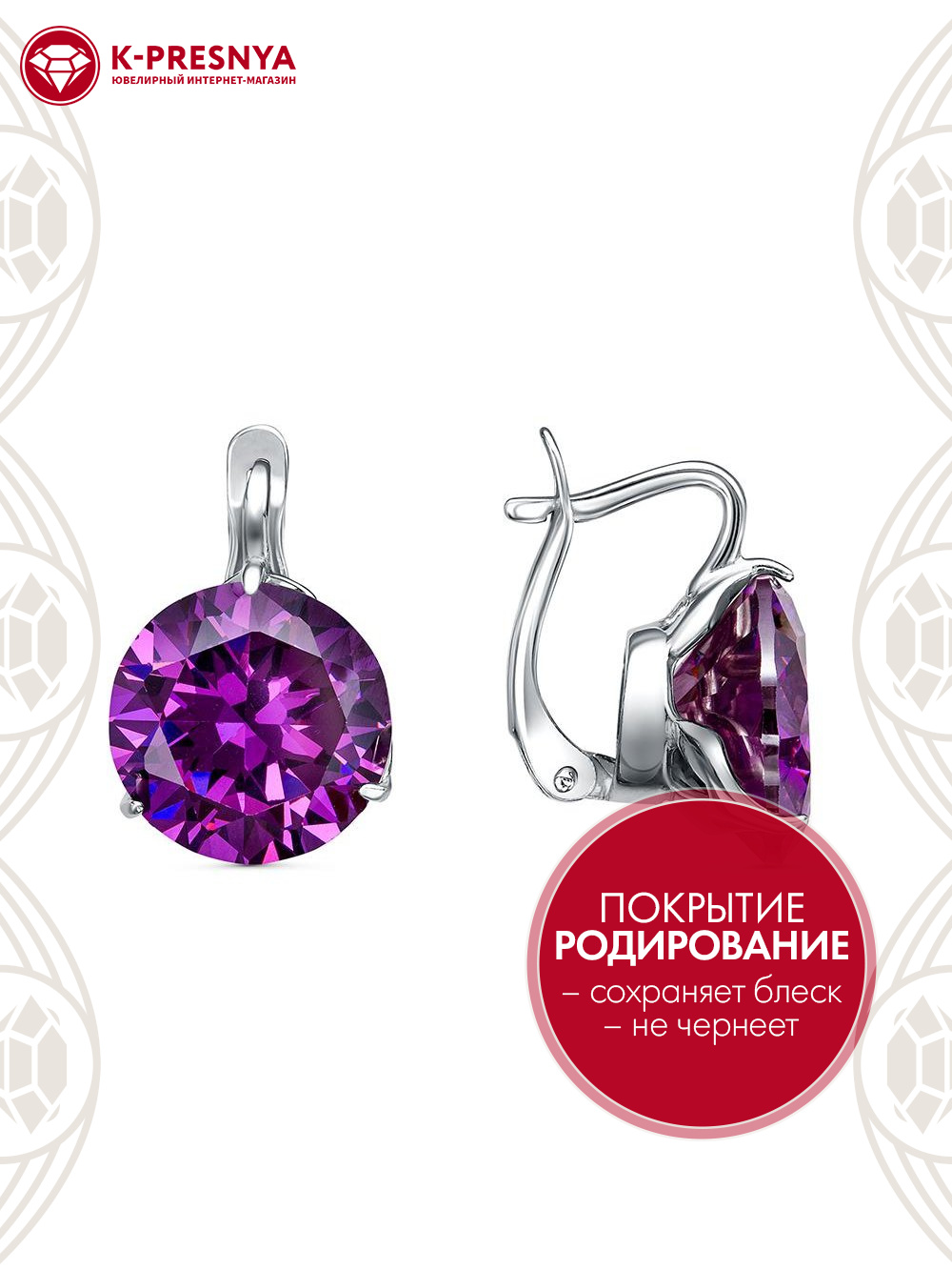 Серьги серебро 925 пробы, покрытие - родирование, вставка - фианит (недрагоценный камень)