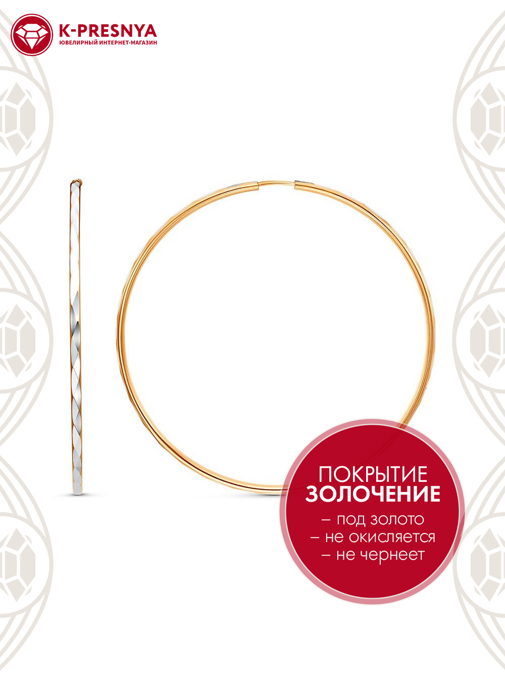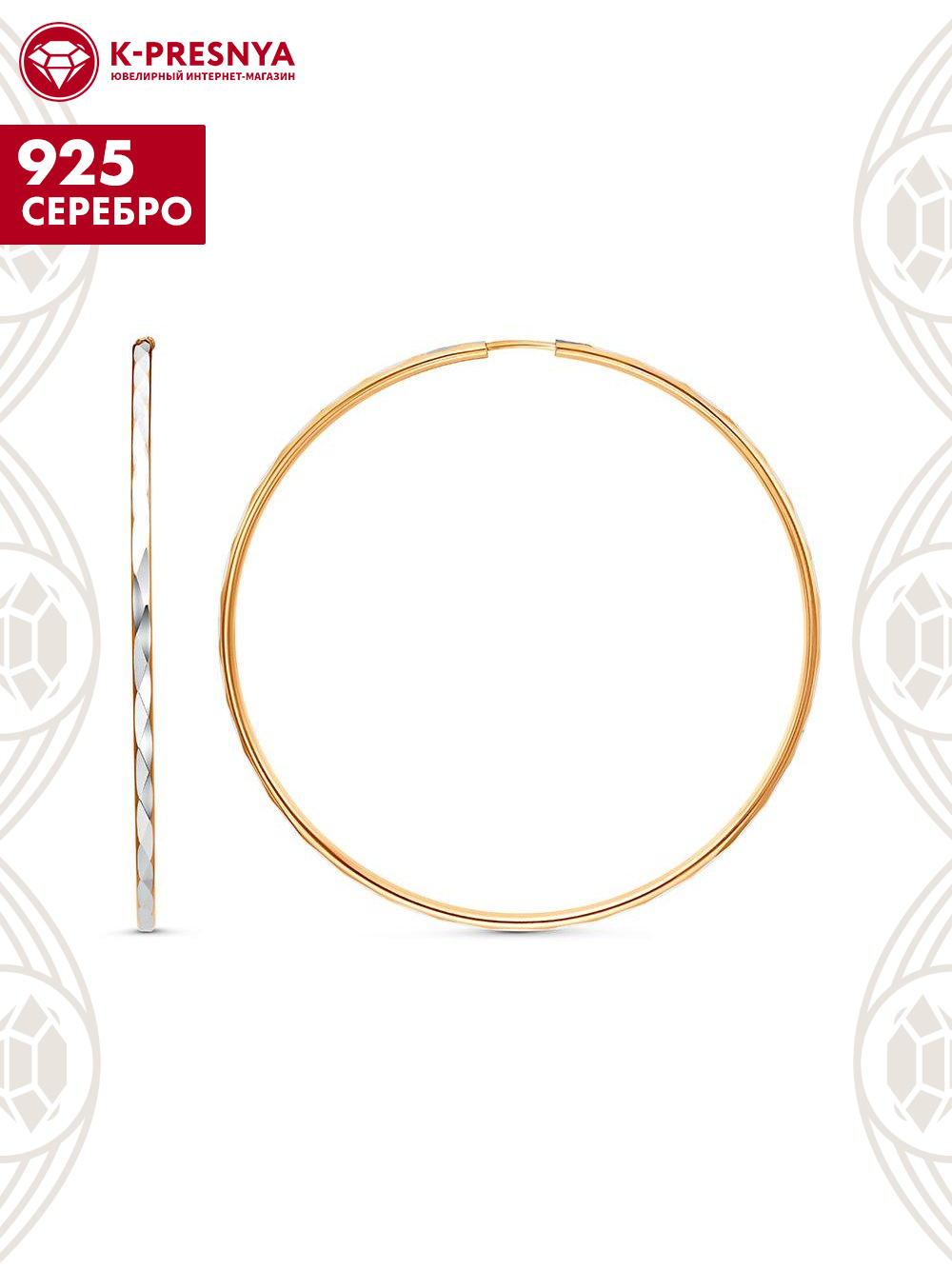 Серьги серебро 925 пробы, покрытие - золочение, отделка - алмазная грань, без вставок
