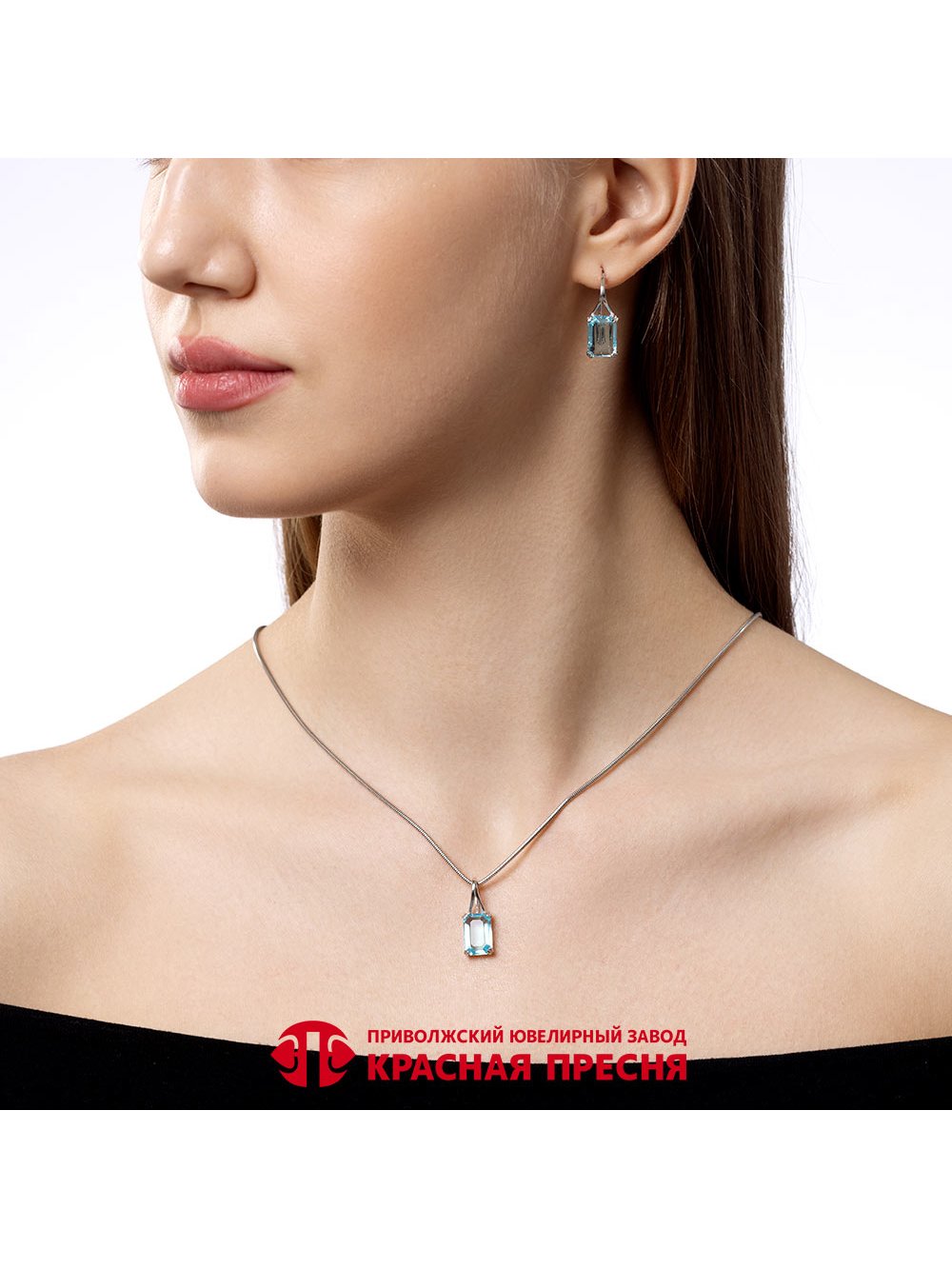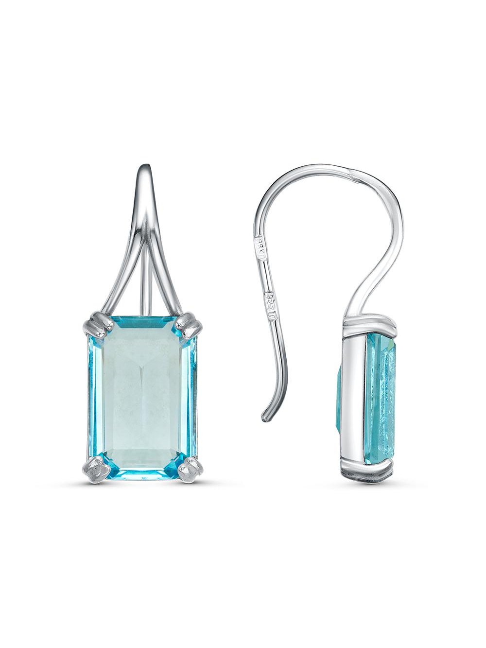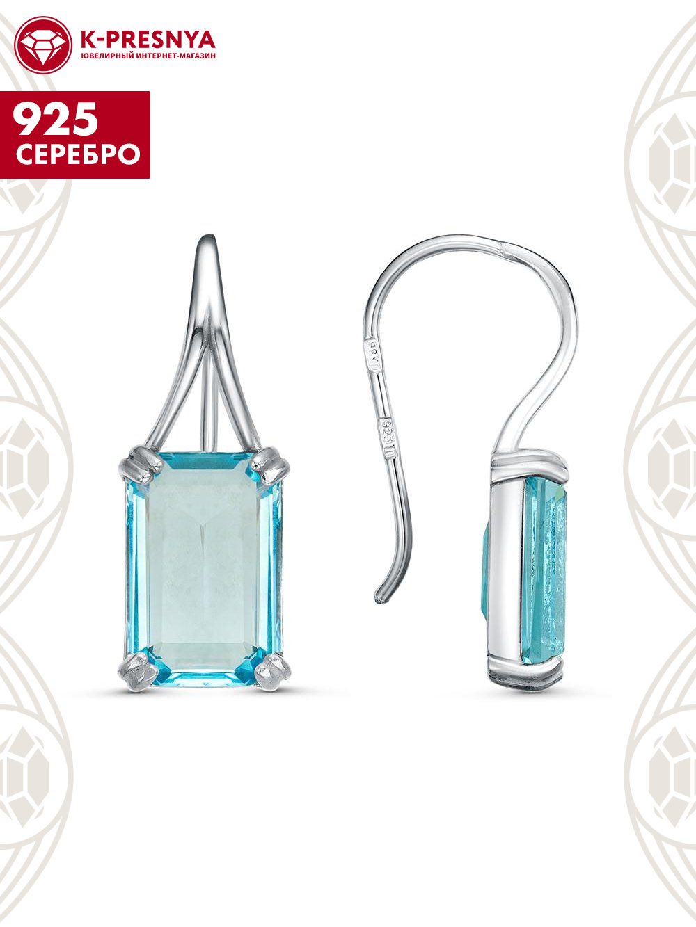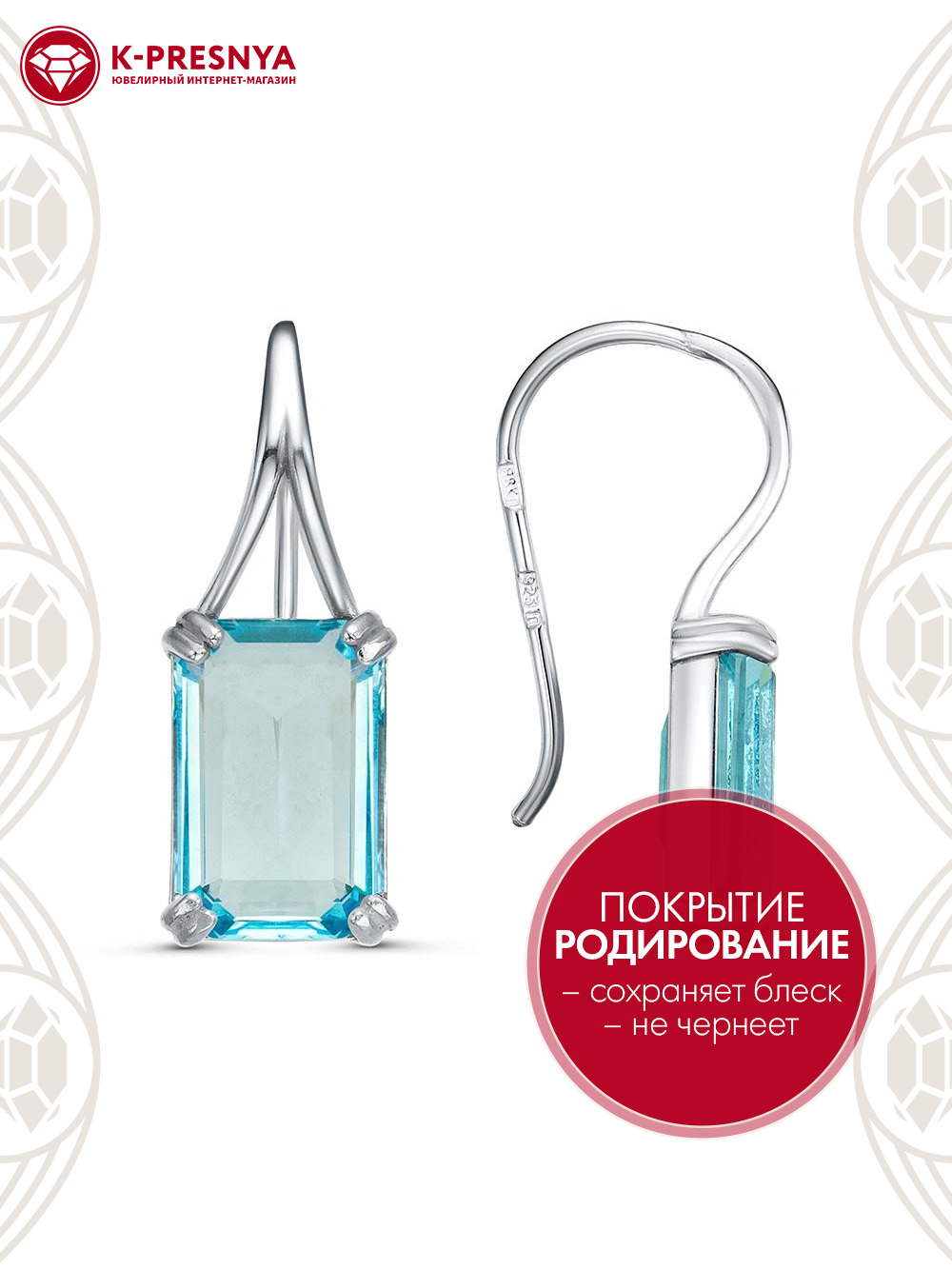 Серьги серебро 925 пробы, покрытие - родирование, вставка - топаз голубой (искусственный)