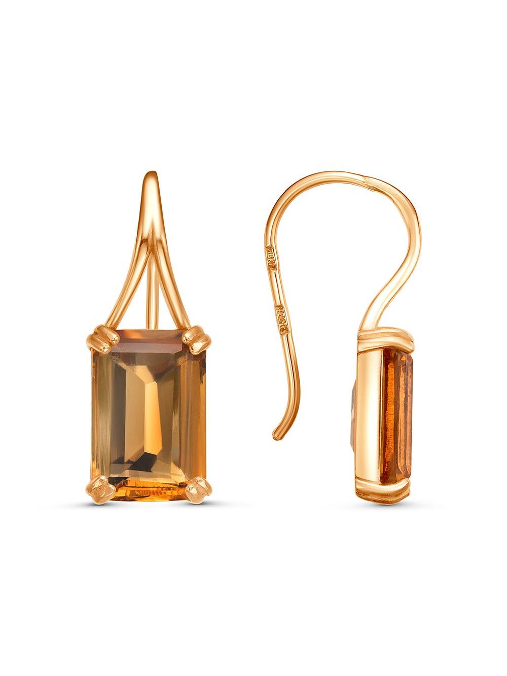 Серьги серебро 925 пробы, покрытие - золочение, вставка - искусственный султанит