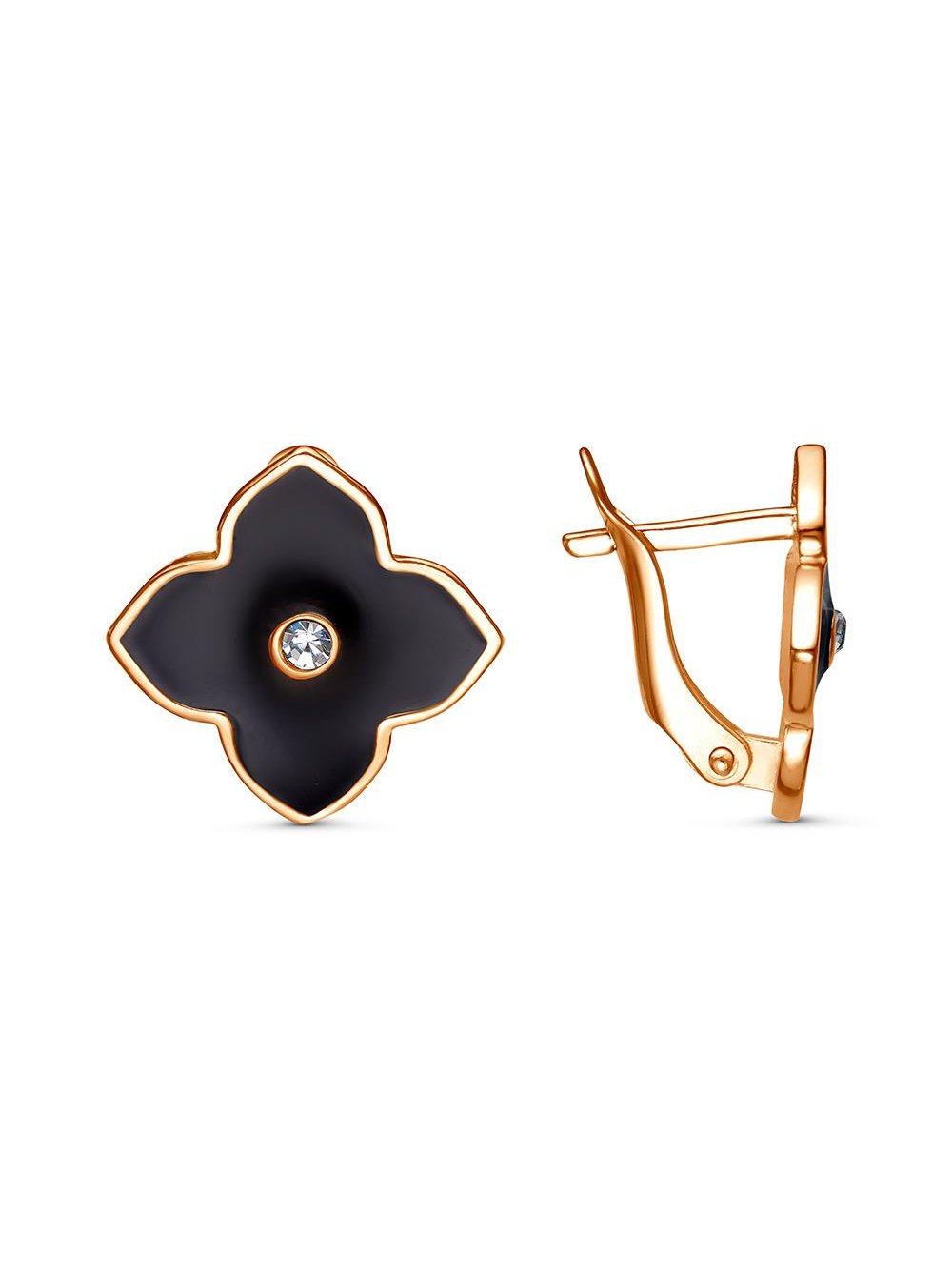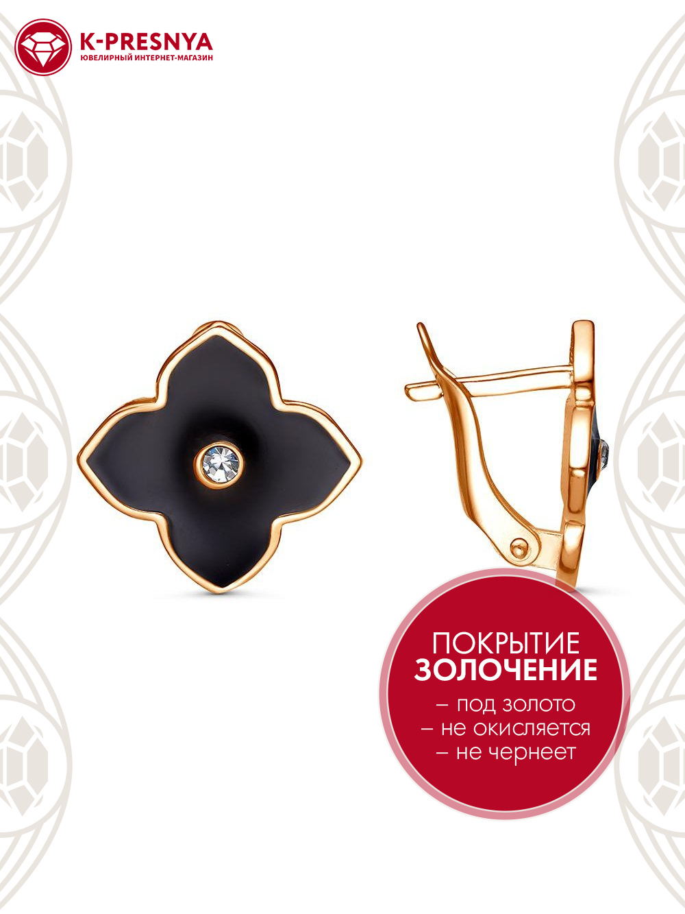 Серьги бижутерия, покрытие - золочение, отделка - эмаль, вставка - стекло ювелирное preciosa