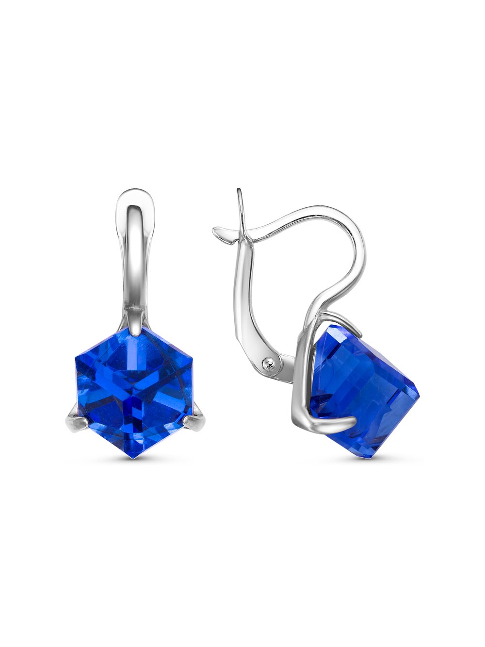 Серьги бижутерия, покрытие - серебрение с оксидированием, вставка - ювелирное стекло европейской огранки