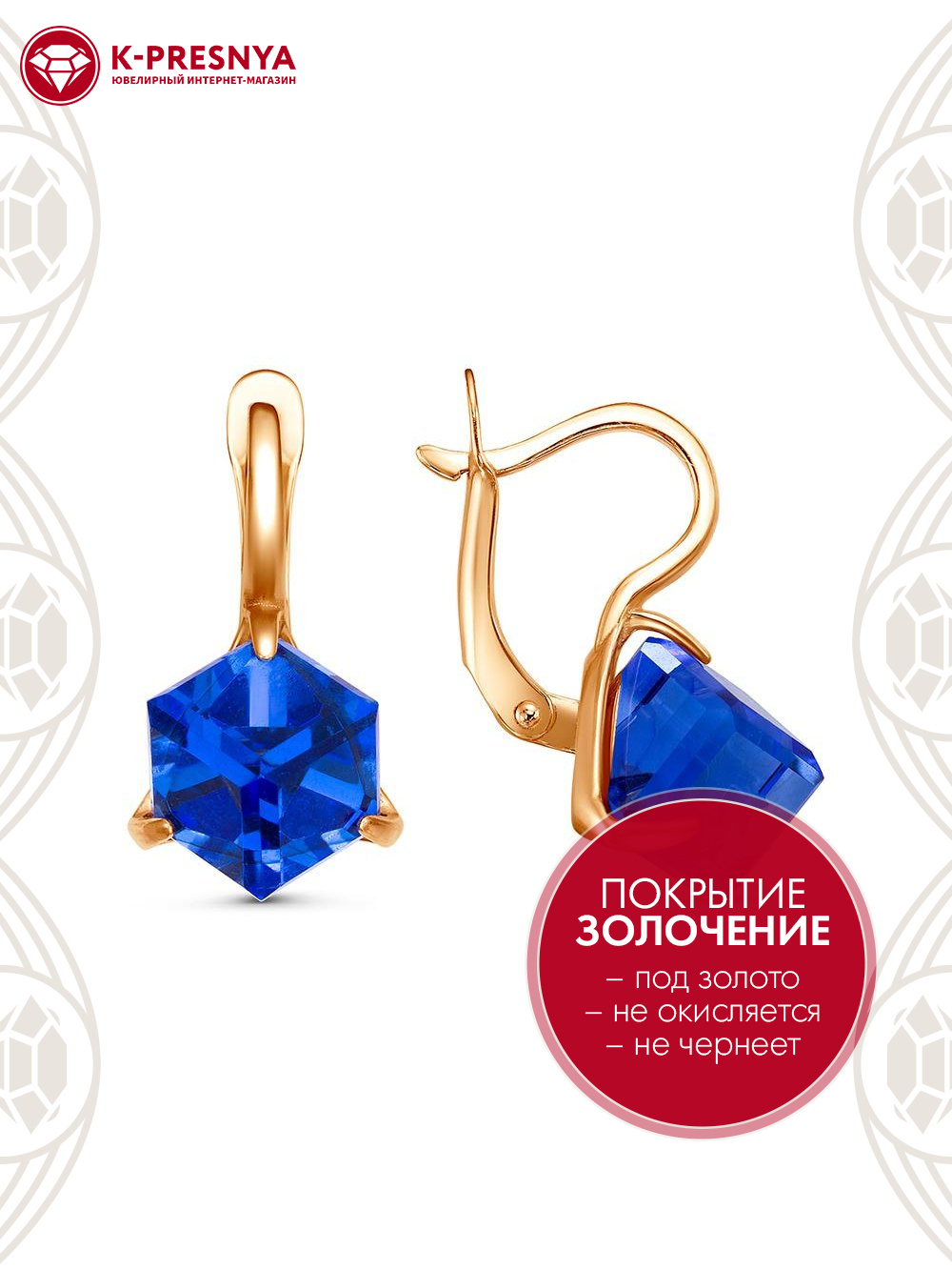 Серьги бижутерия, покрытие - золочение, вставка - ювелирное стекло европейской огранки