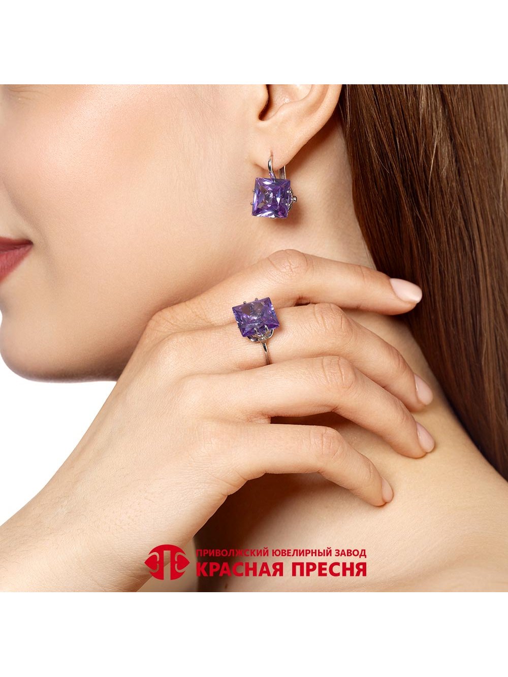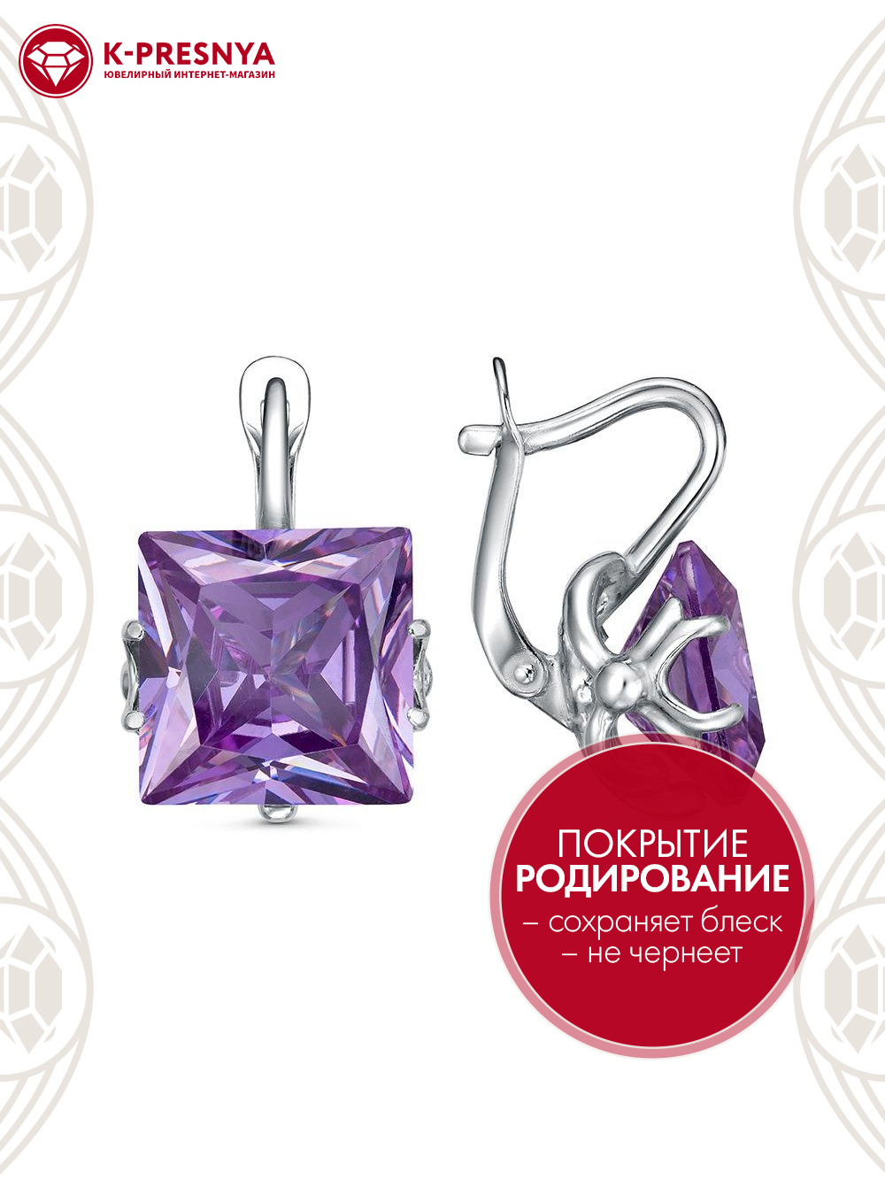 Серьги серебро 925 пробы, покрытие - родирование, вставка - фианит (недрагоценный камень)