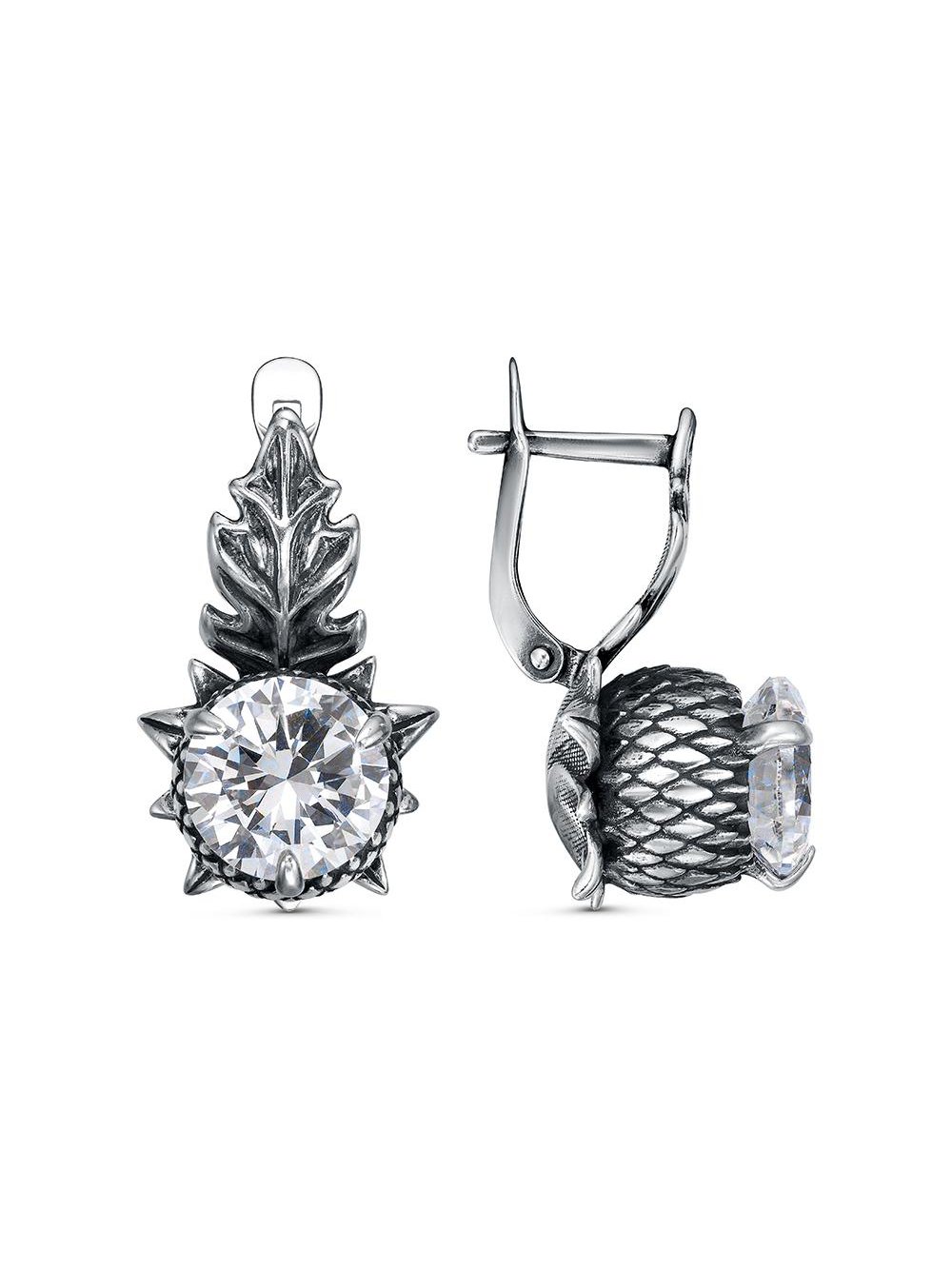 Серьги бижутерия, покрытие - серебрение с оксидированием, вставка - фианит (недрагоценный камень)