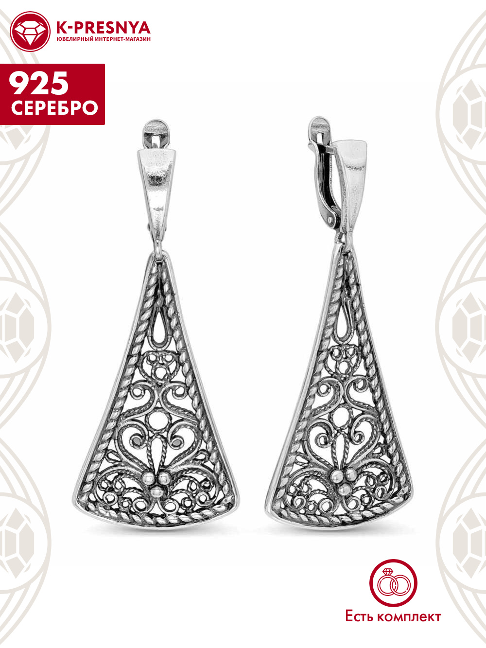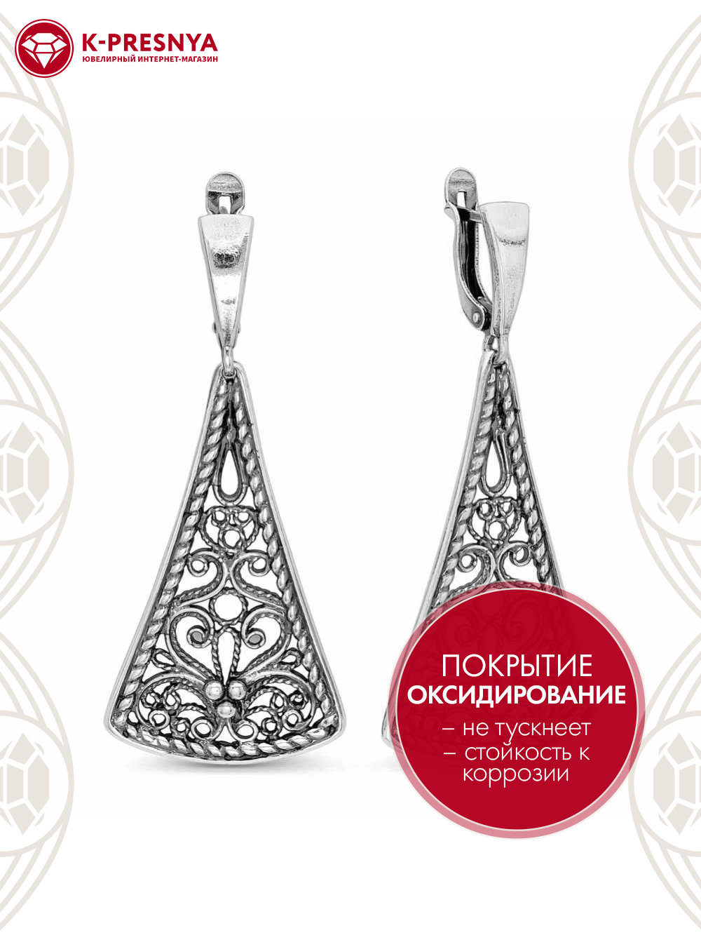 Серьги серебро 925 пробы, покрытие - оксидирование, без вставок