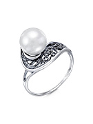 Кольцо серебро 925 пробы, покрытие - оксидирование, вставка - имитация жемчуга (17) |