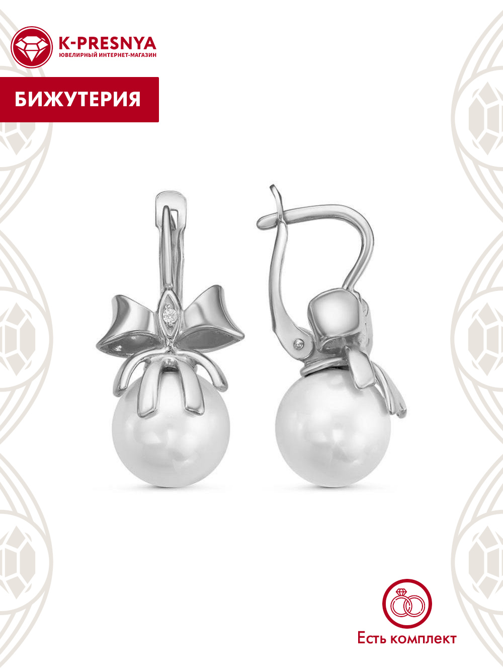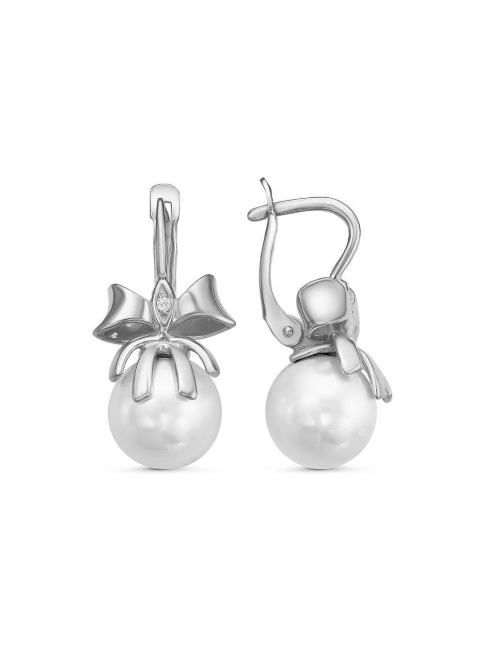 Серьги бижутерия, покрытие - серебрение с оксидированием, вставка - имитация жемчуга, стекло ювелирное preciosa