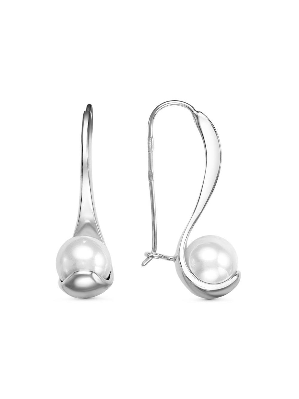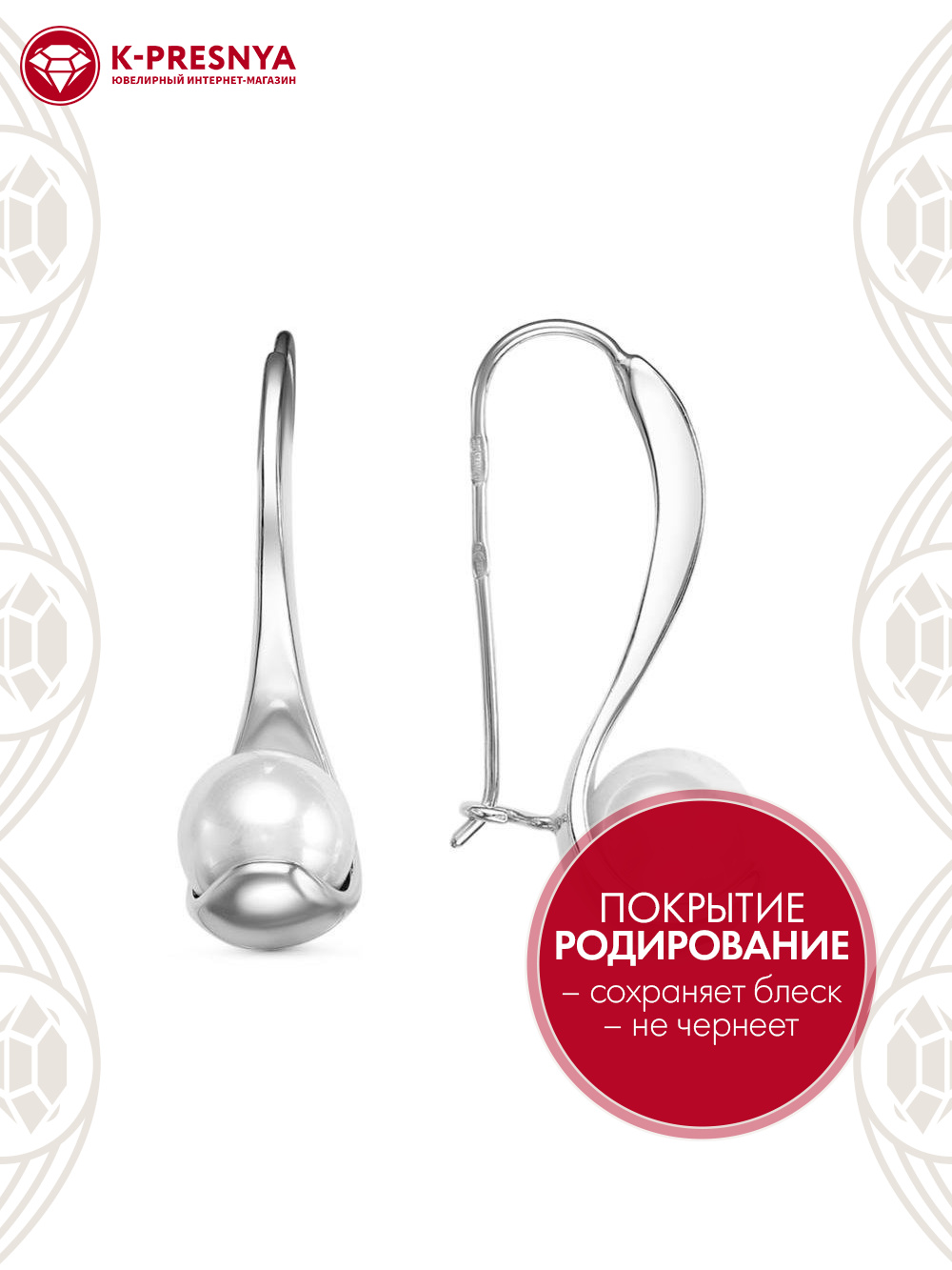 Серьги серебро 925 пробы, покрытие - родирование, вставка - имитация жемчуга