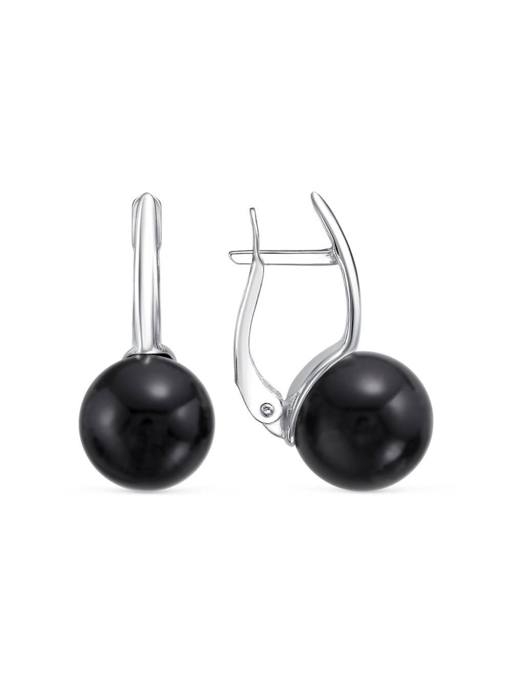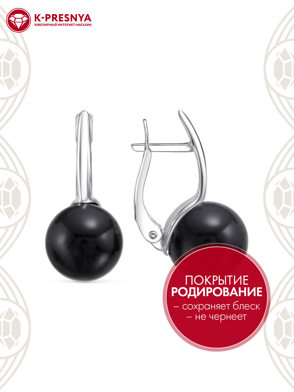 Серьги серебро 925 пробы, покрытие - родирование, вставка - имитация жемчуга
