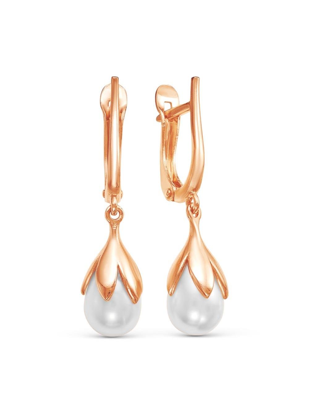Серьги серебро 925 пробы, покрытие - золочение, вставка - имитация жемчуга