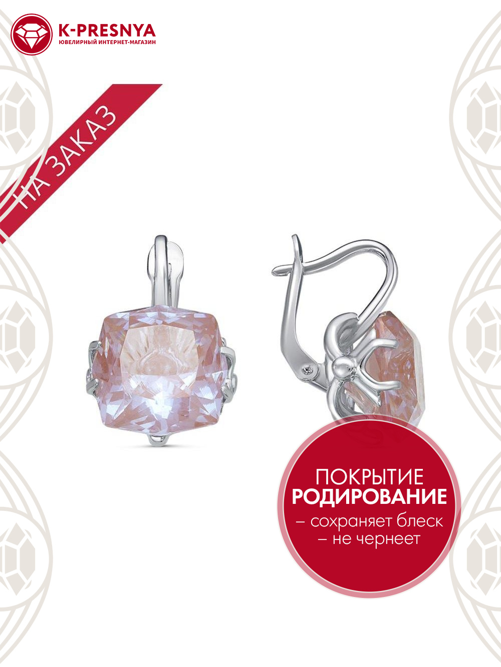Серьги серебро 925 пробы, покрытие - родирование, вставка - ситалл собственной огранки