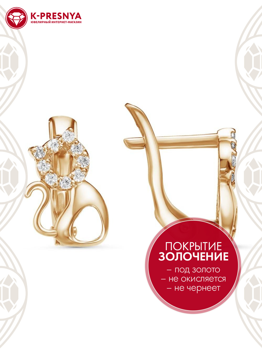 Серьги серебро 925 пробы, покрытие - золочение, вставка - фианит (недрагоценный камень)