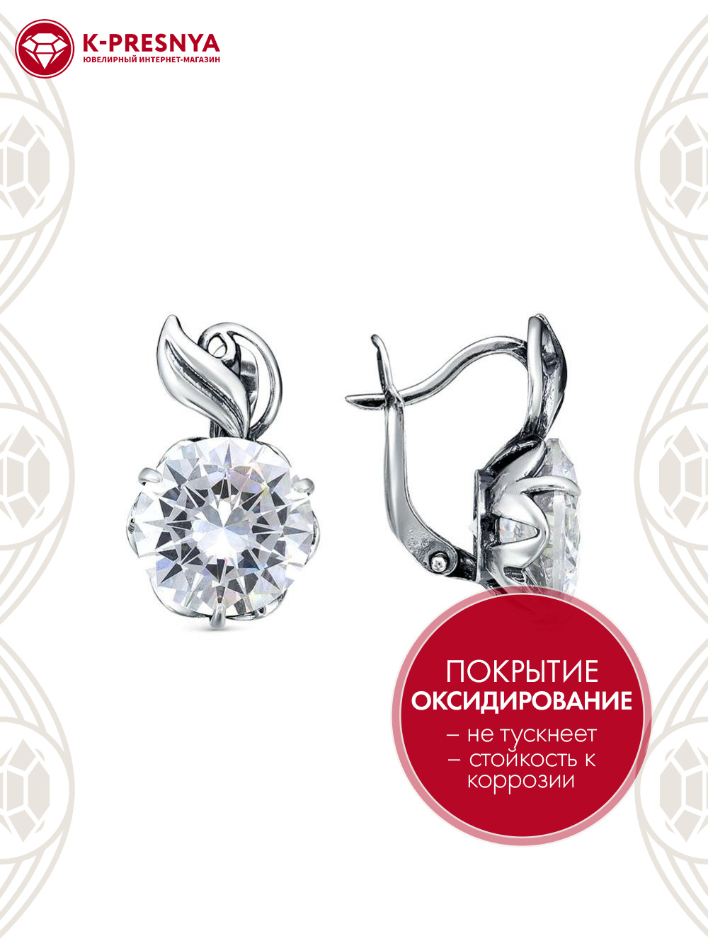 Серьги серебро 925 пробы, покрытие - оксидирование, вставка - фианит (недрагоценный камень)