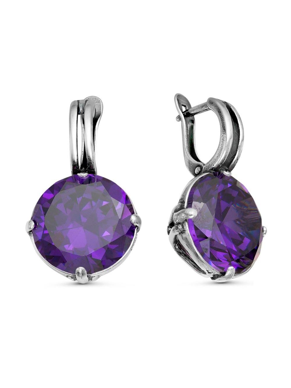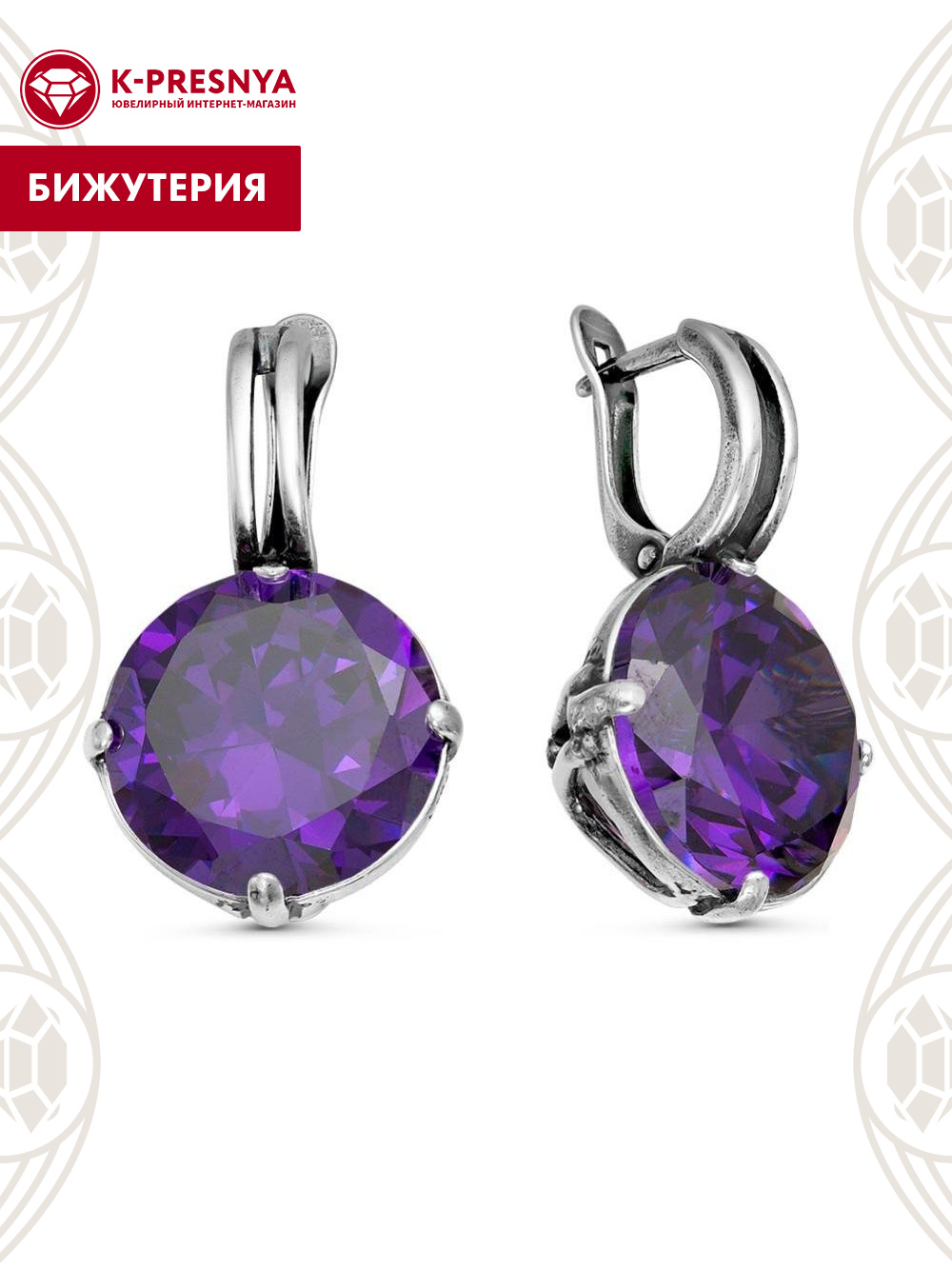 Серьги бижутерия, покрытие - серебрение с оксидированием, вставка - фианит (недрагоценный камень)