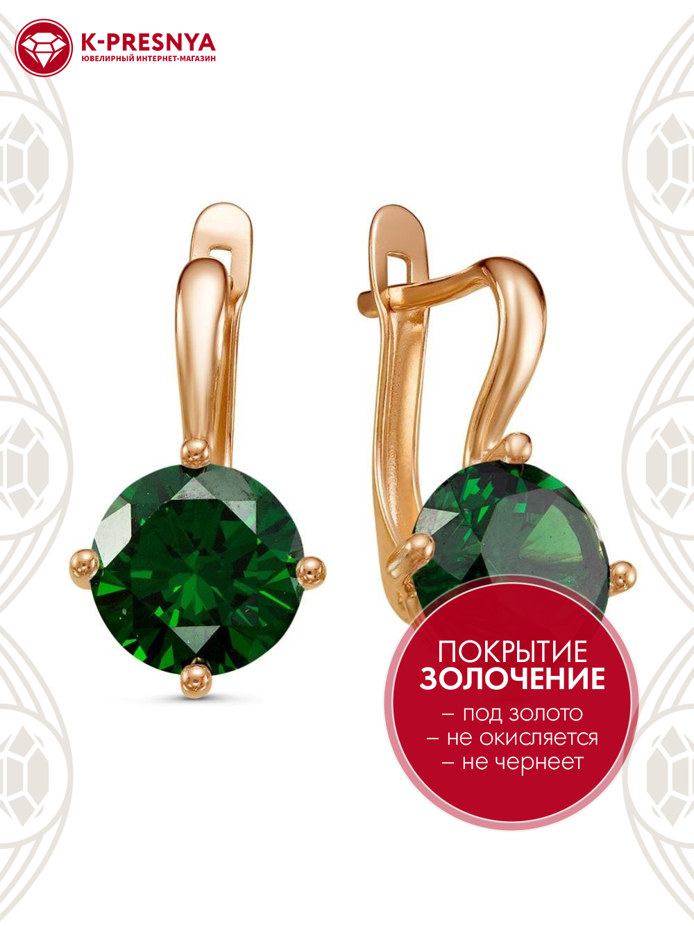 Серьги бижутерия, покрытие - золочение, вставка - фианит (недрагоценный камень)