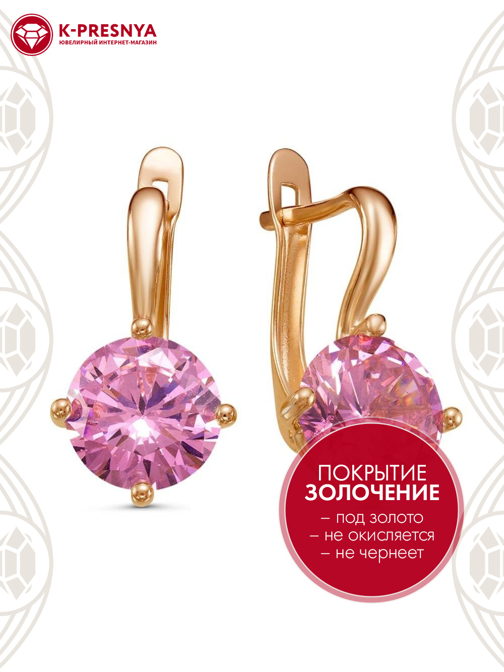 Серьги бижутерия, покрытие - золочение, вставка - фианит (недрагоценный камень)