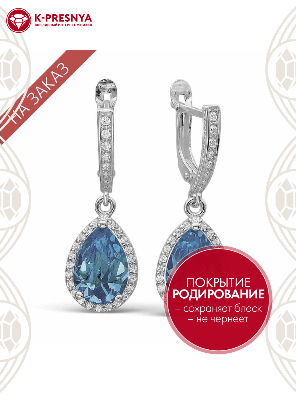 Серьги серебро 925 пробы, покрытие - родирование