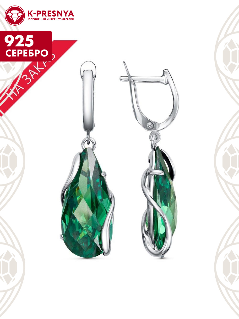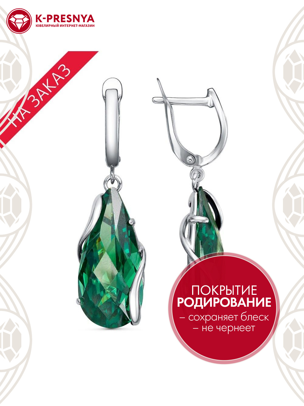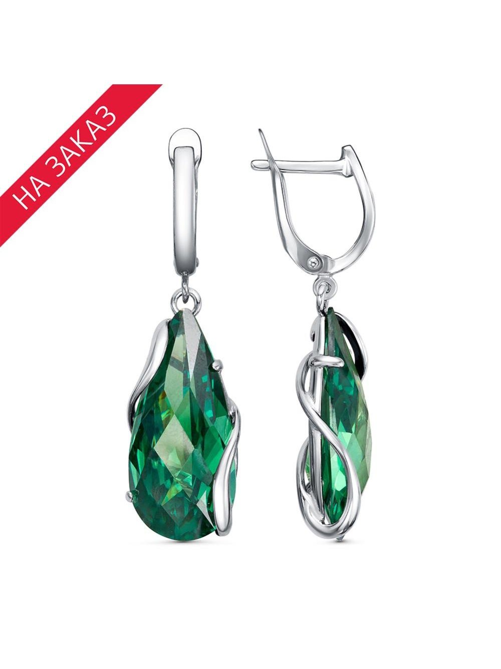 Серьги серебро 925 пробы, покрытие - родирование, вставка - фианит собственной огранки (недрагоценный камень)