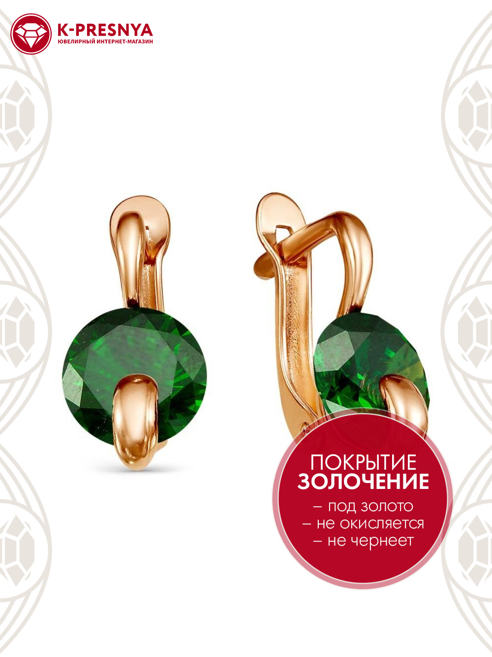 Серьги бижутерия, покрытие - золочение, вставка - фианит (недрагоценный камень)