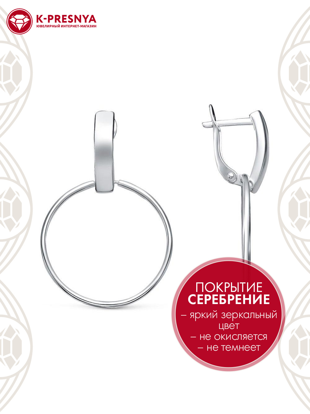 Серьги бижутерия, покрытие - серебрение, без вставок