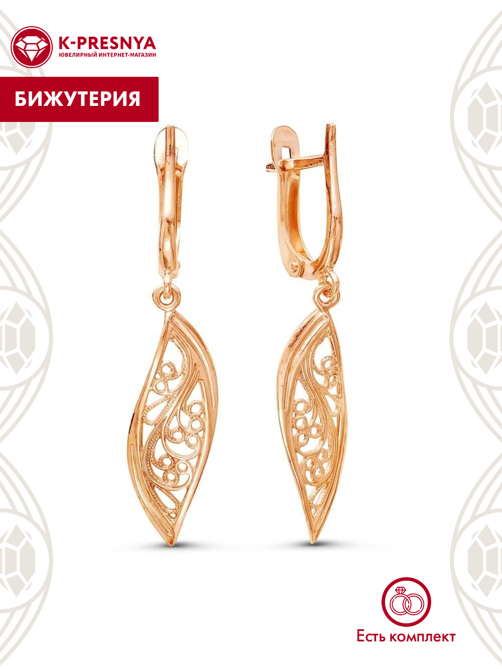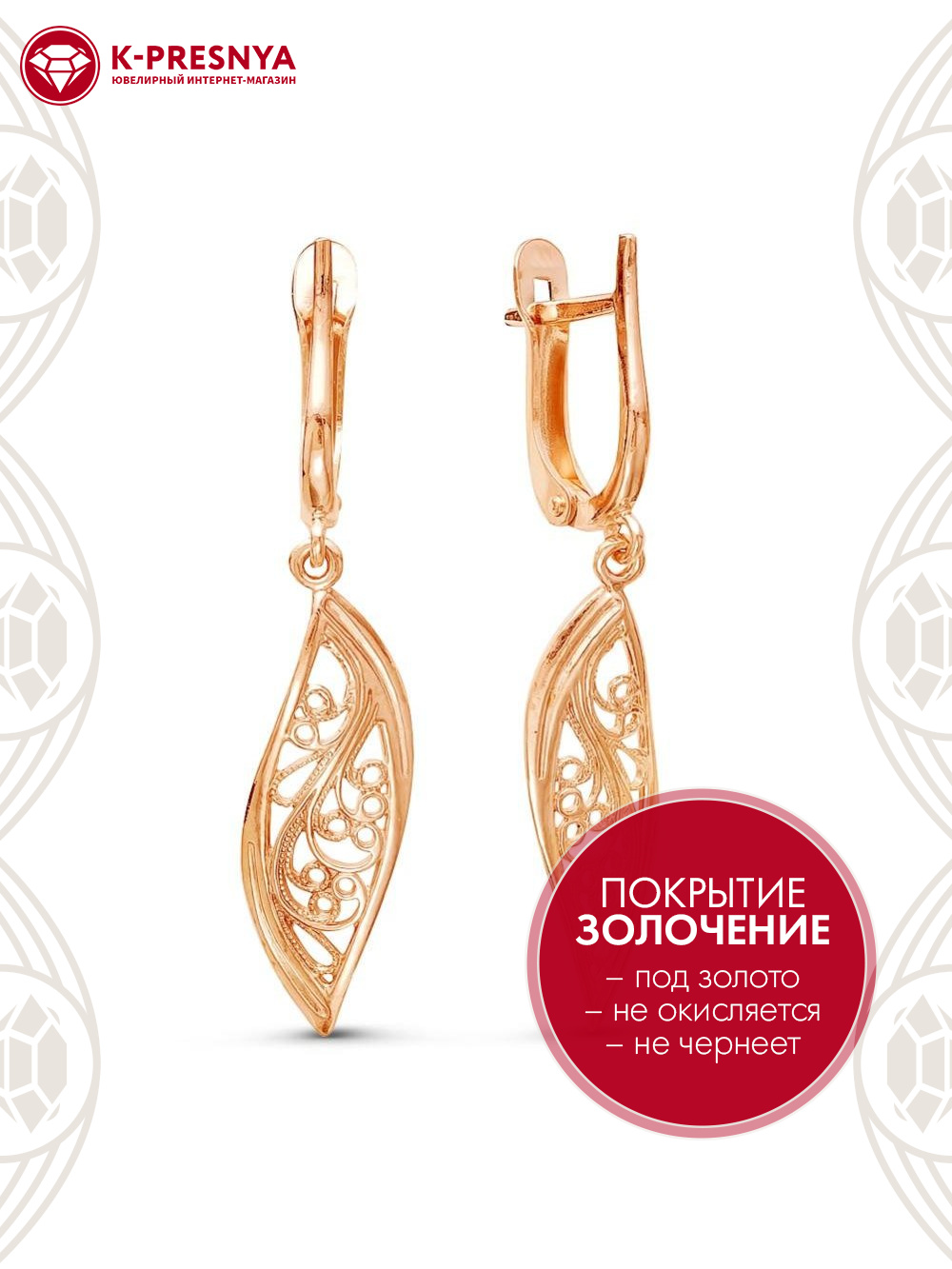 Серьги бижутерия, покрытие - золочение, без вставок