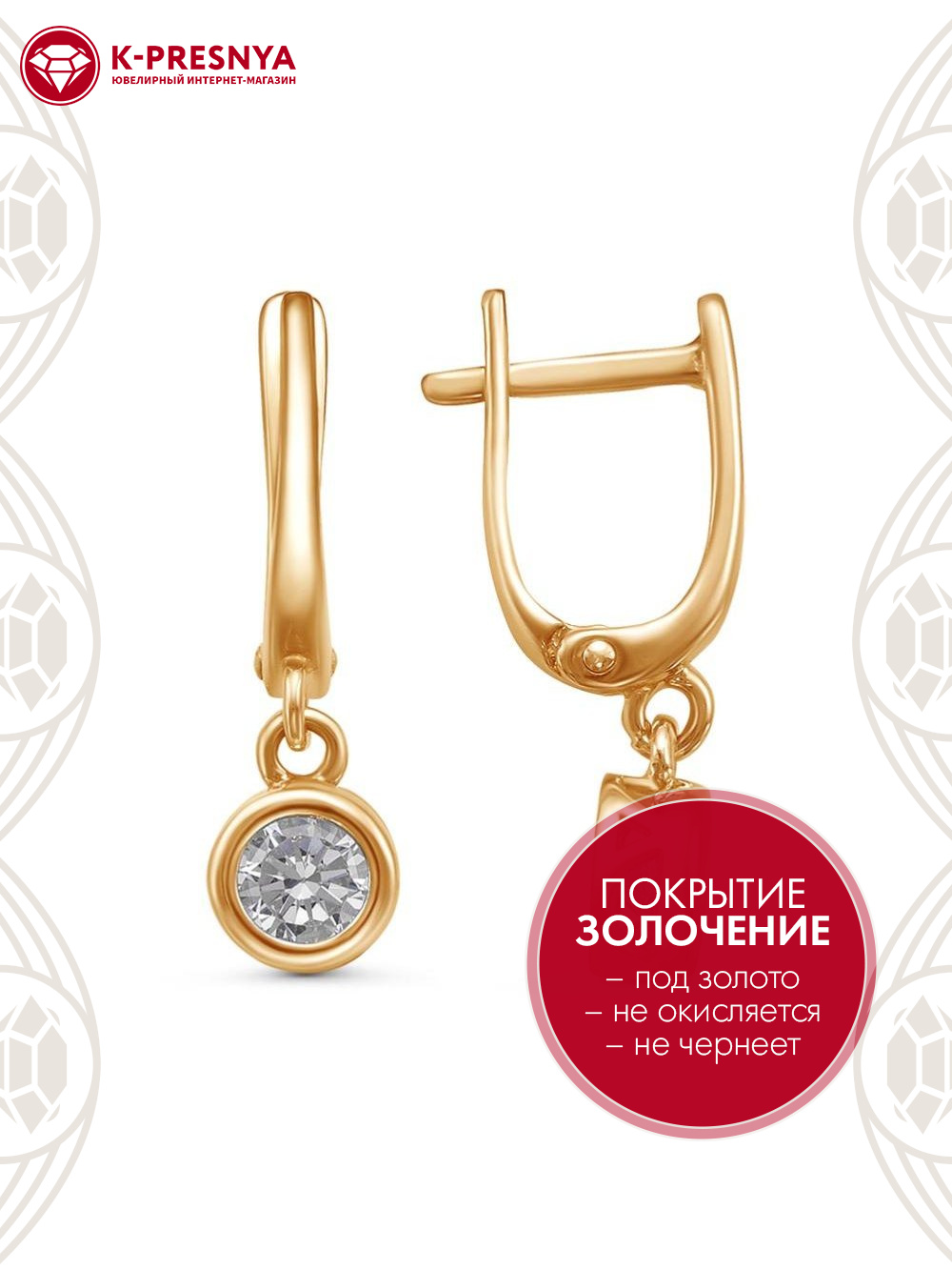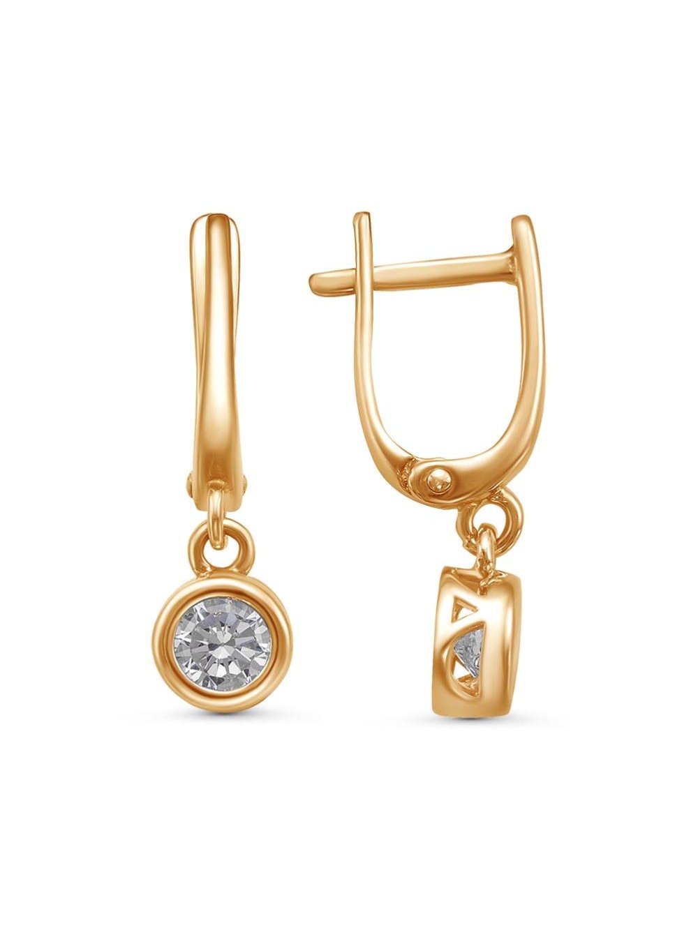 Серьги серебро 925 пробы, покрытие - золочение, вставка - фианит (недрагоценный камень)