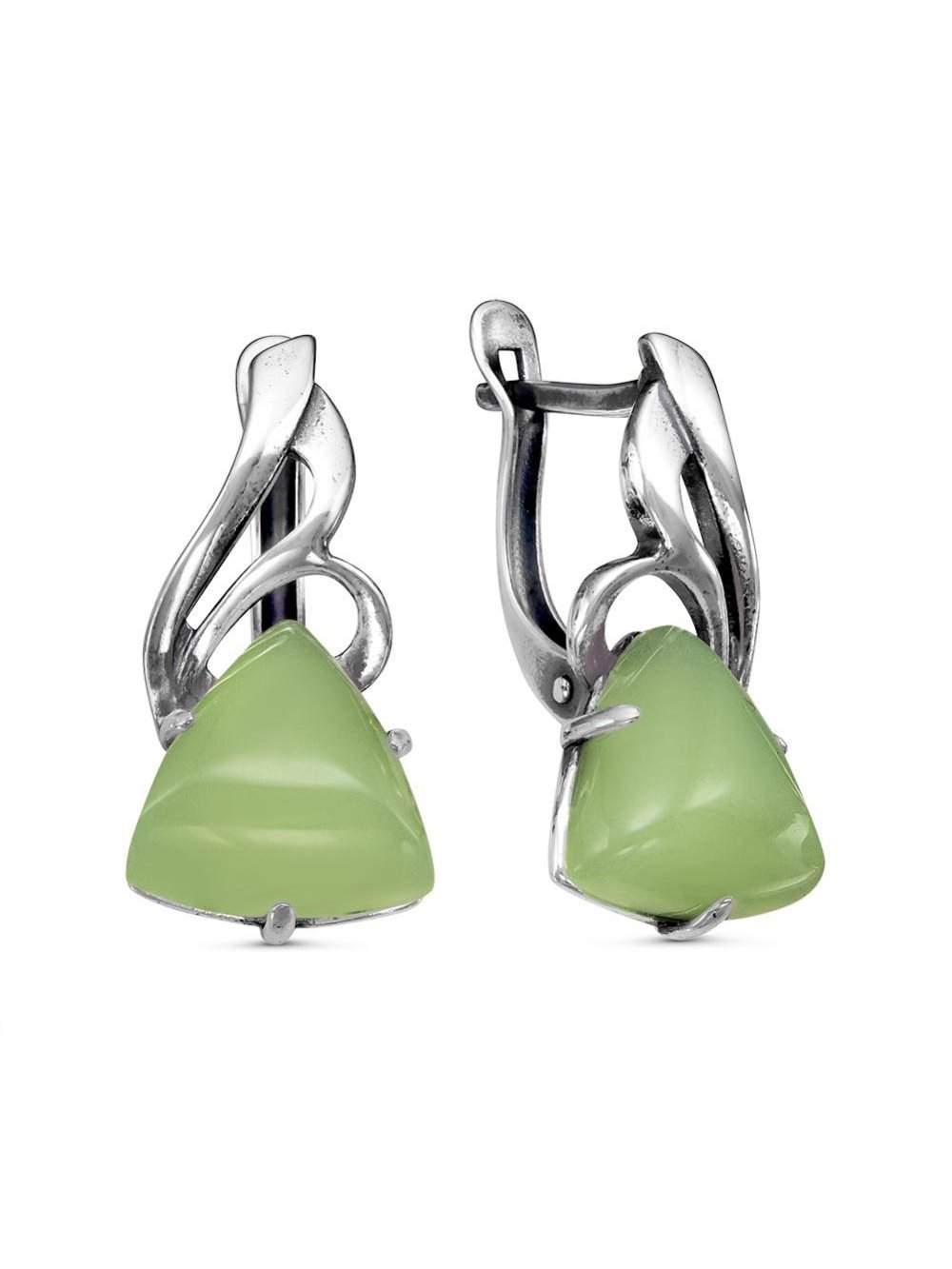 Серьги бижутерия, покрытие - серебрение с оксидированием, вставка - искусственный нефрит