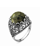 Серьги бижутерия, покрытие - серебрение с оксидированием, вставка - змеевик