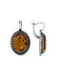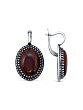 Серьги бижутерия, покрытие - серебрение с оксидированием, вставка - искусственный нефрит