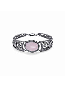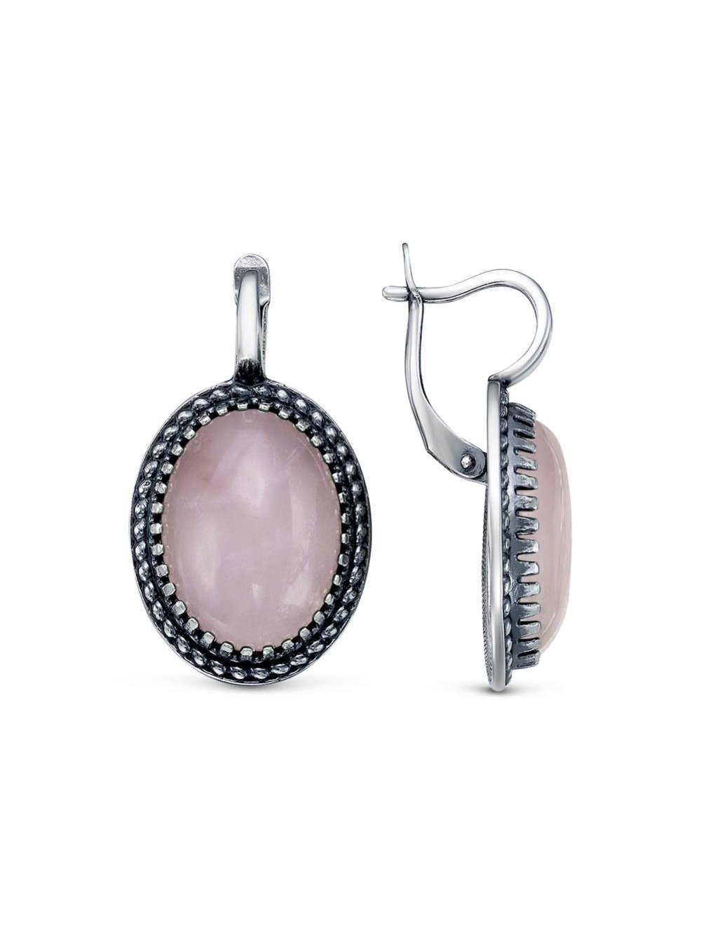 Серьги бижутерия, покрытие - серебрение с оксидированием, вставка - искусственный кварц розовый