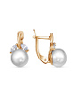 Серьги бижутерия, покрытие - золочение, вставка - культивированный жемчуг, фианит (недрагоценный камень)