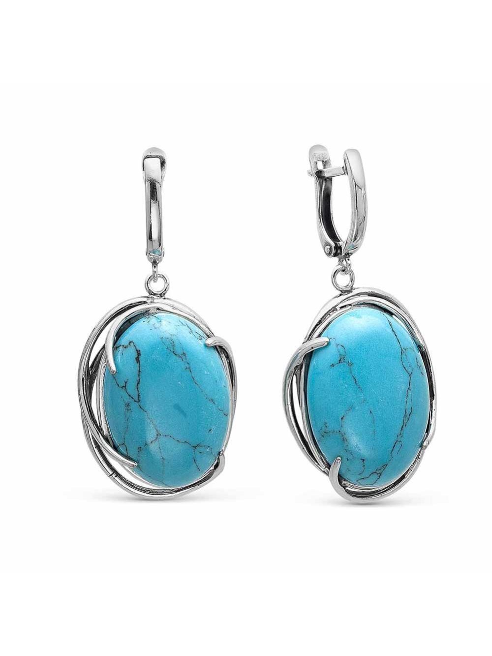 Серьги бижутерия, покрытие - серебрение с оксидированием, вставка - искусственная бирюза