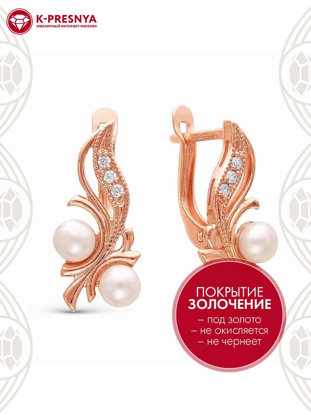 Серьги бижутерия, покрытие - золочение, вставка - культивированный жемчуг, стекло ювелирное preciosa