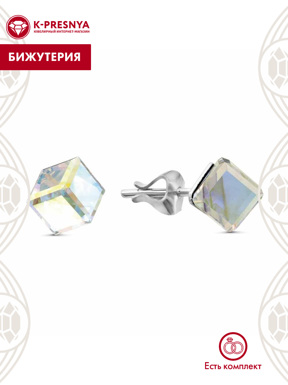 Серьги бижутерия, покрытие - серебрение, вставка - ювелирное стекло европейской огранки