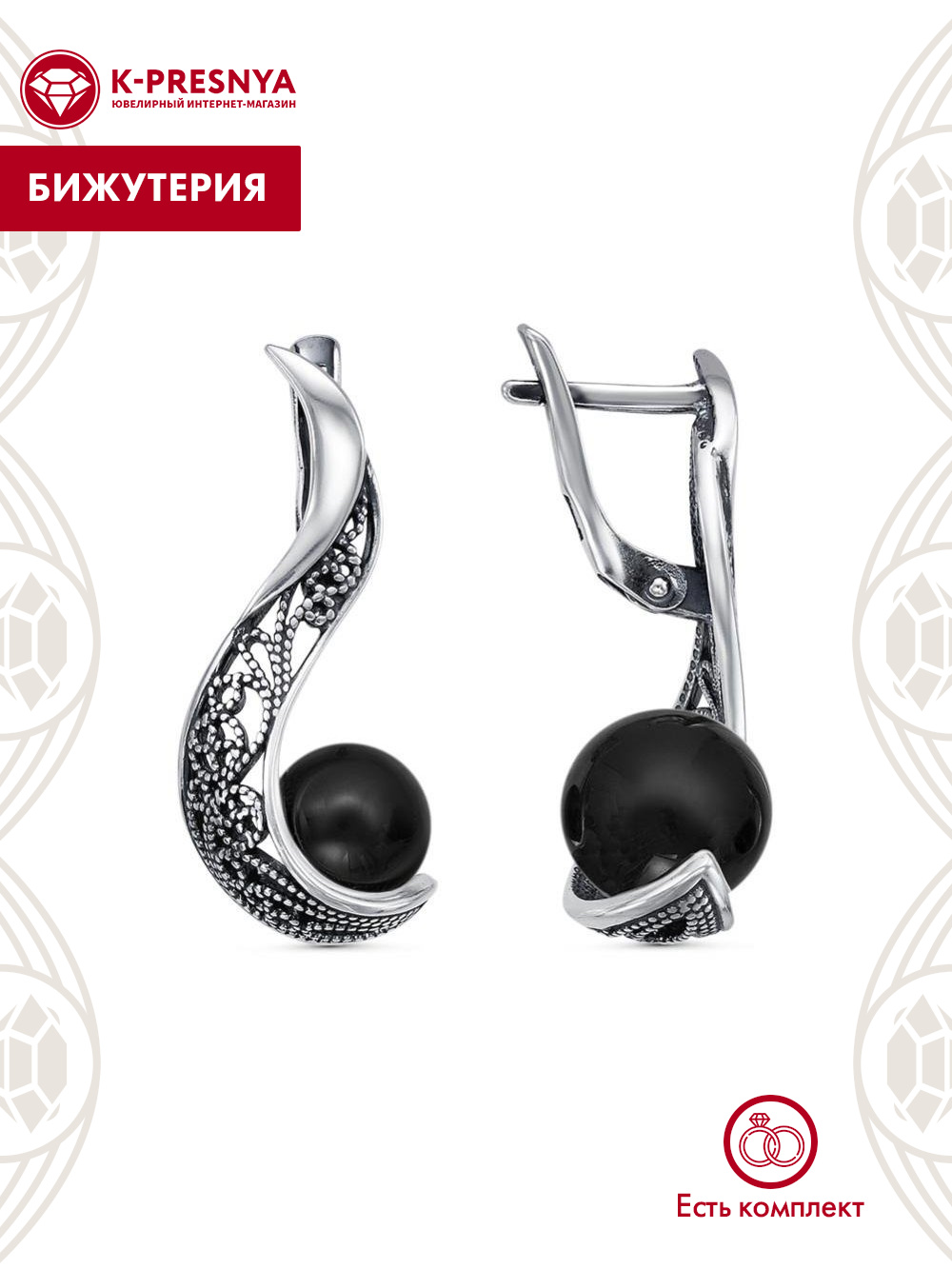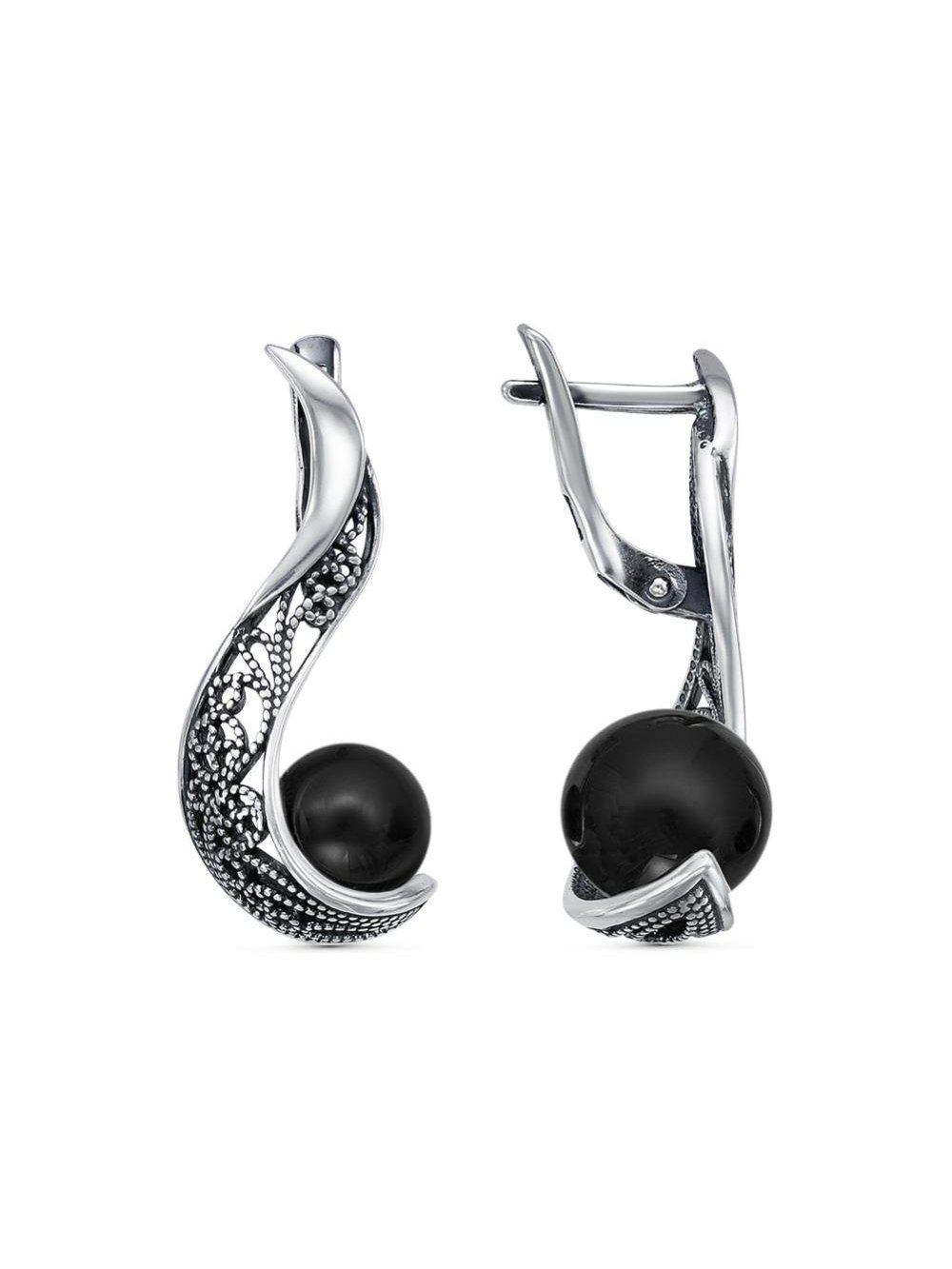 Серьги бижутерия, покрытие - серебрение с оксидированием, вставка - имитация жемчуга