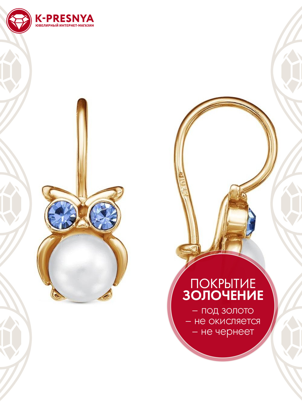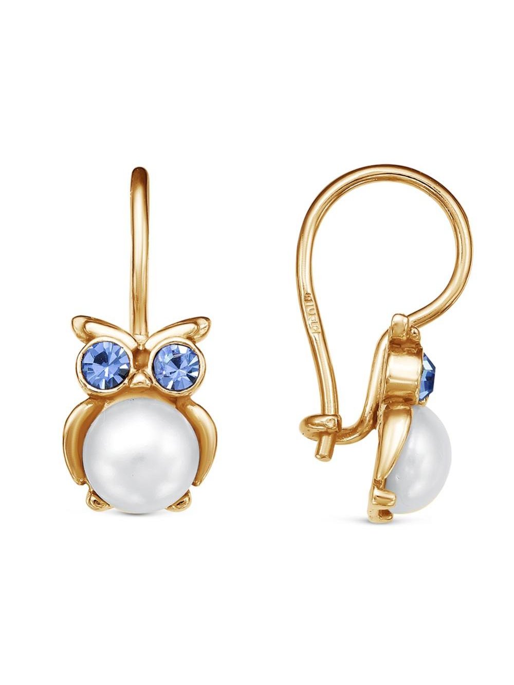 Серьги бижутерия, покрытие - золочение, вставка - имитация жемчуга, стекло ювелирное preciosa