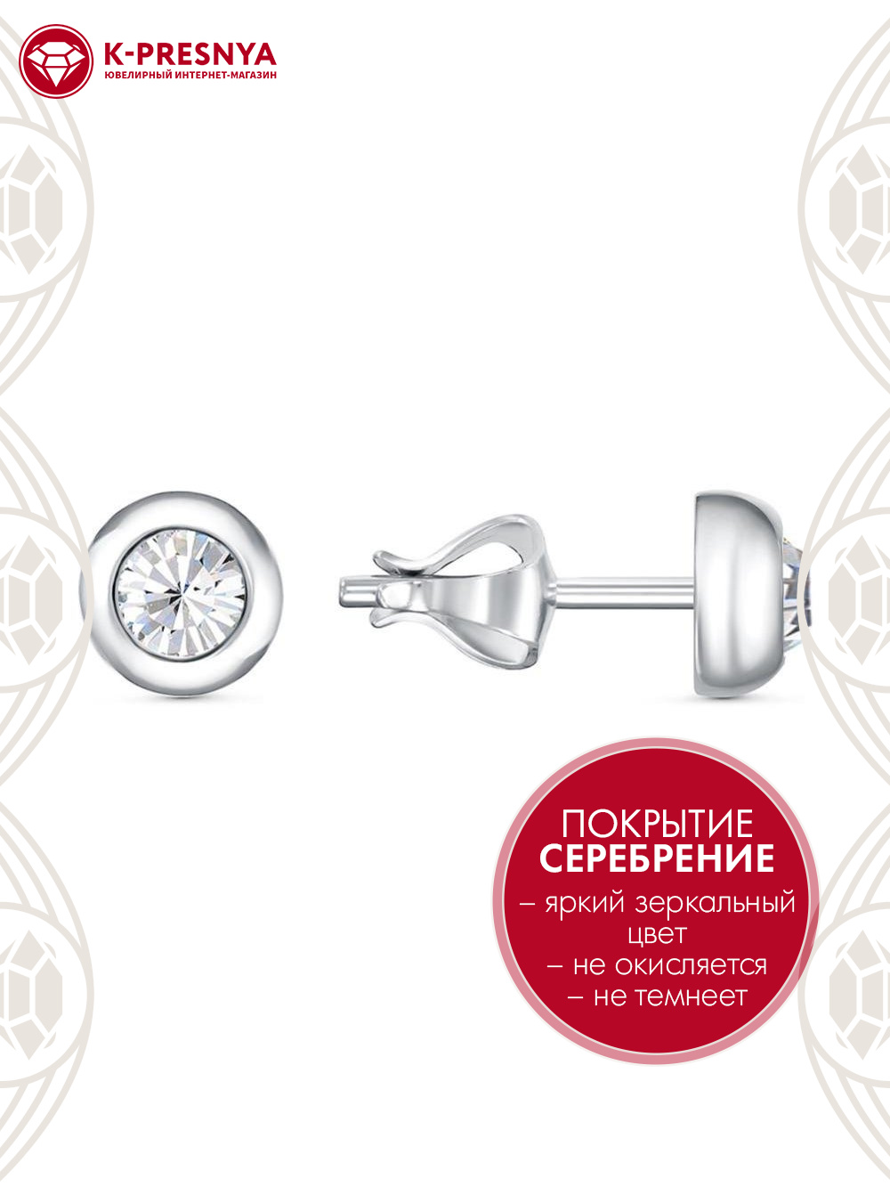 Серьги бижутерия, покрытие - серебрение, вставка - стекло ювелирное preciosa