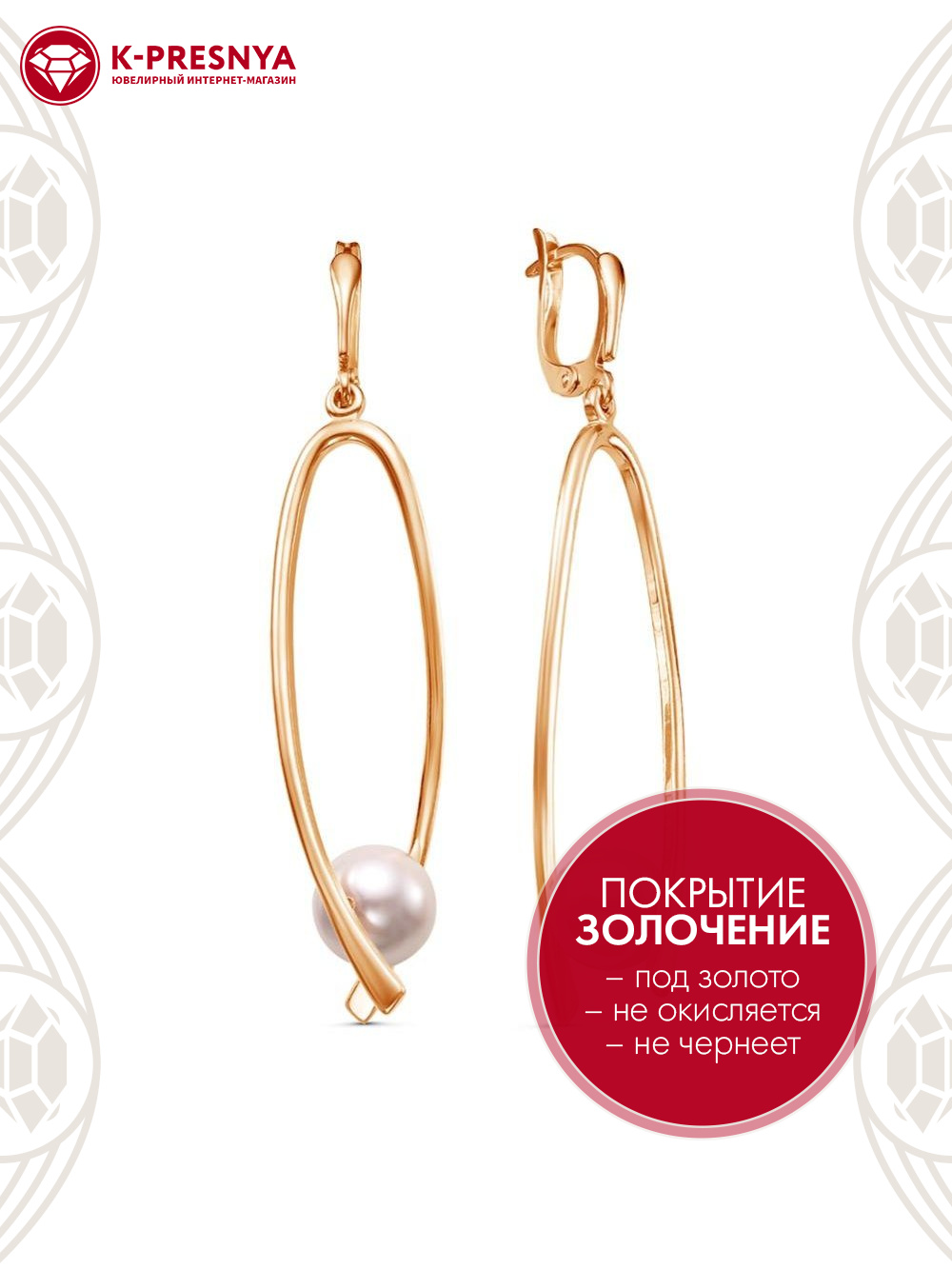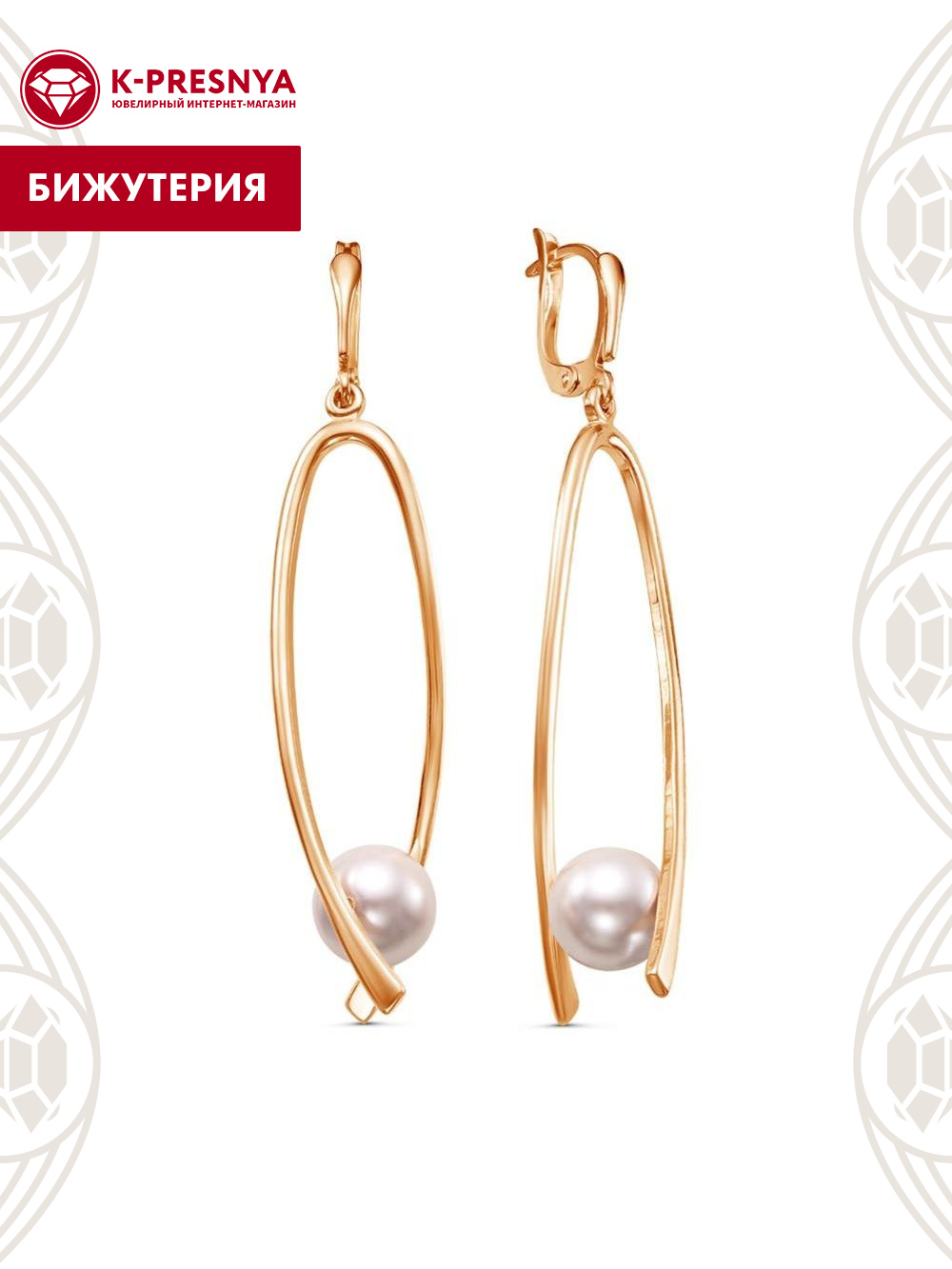 Серьги бижутерия, покрытие - золочение, вставка - имитация жемчуга