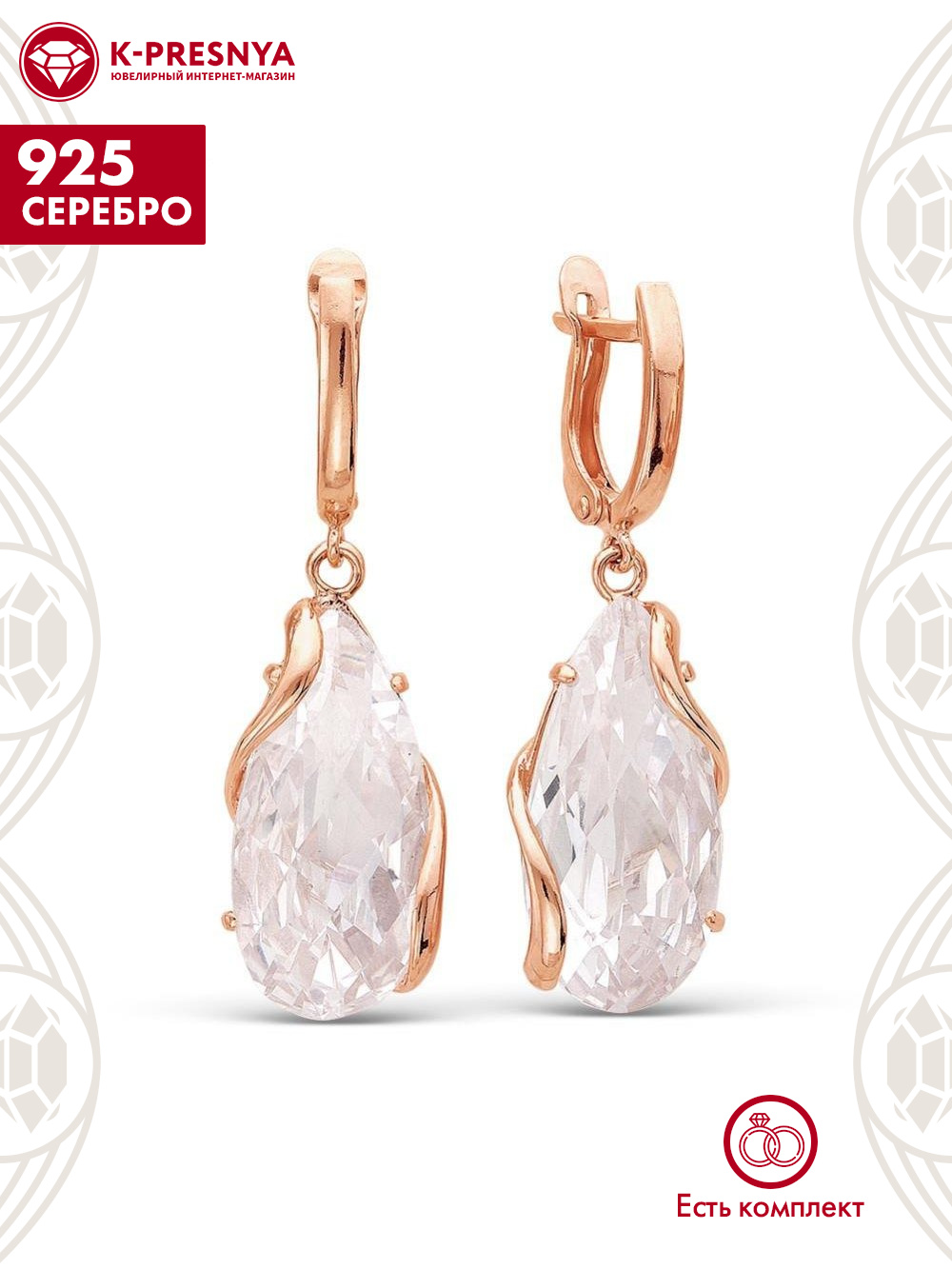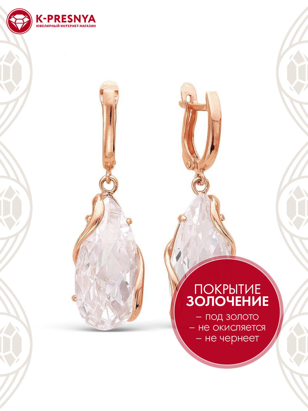 Серьги серебро 925 пробы, покрытие - золочение, вставка - фианит собственной огранки (недрагоценный камень)