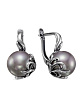 Серьги бижутерия, покрытие - серебрение с оксидированием, вставка - имитация жемчуга