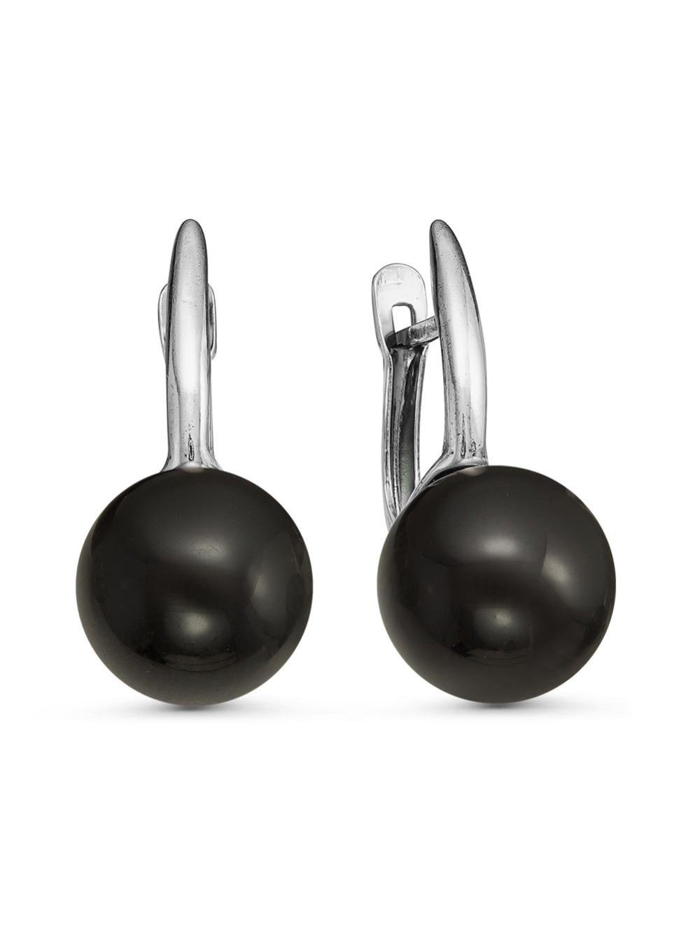 Серьги бижутерия, покрытие - серебрение с оксидированием, вставка - имитация жемчуга