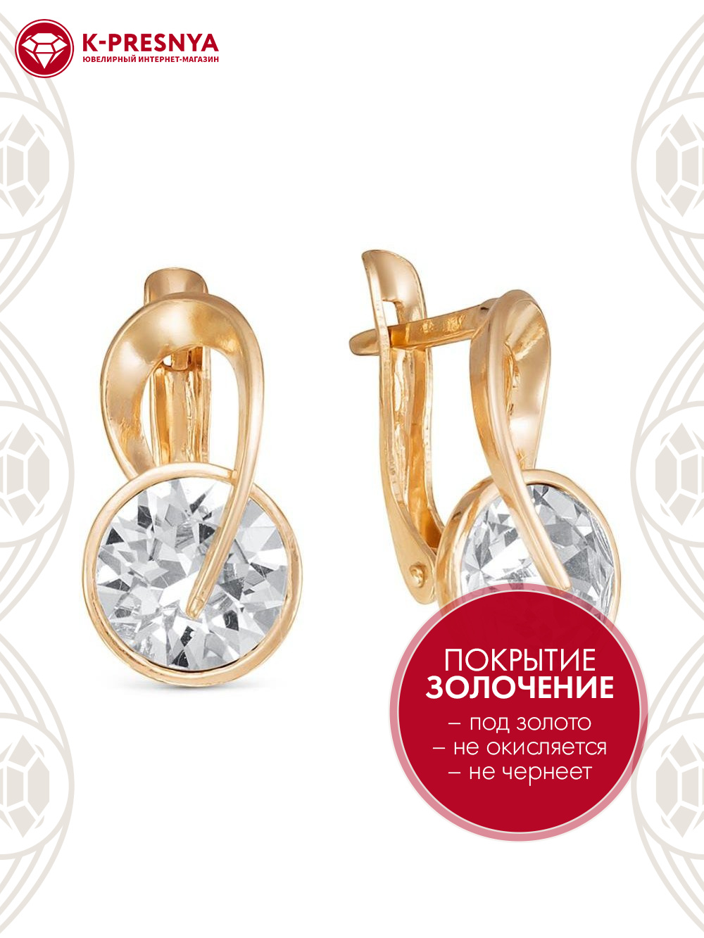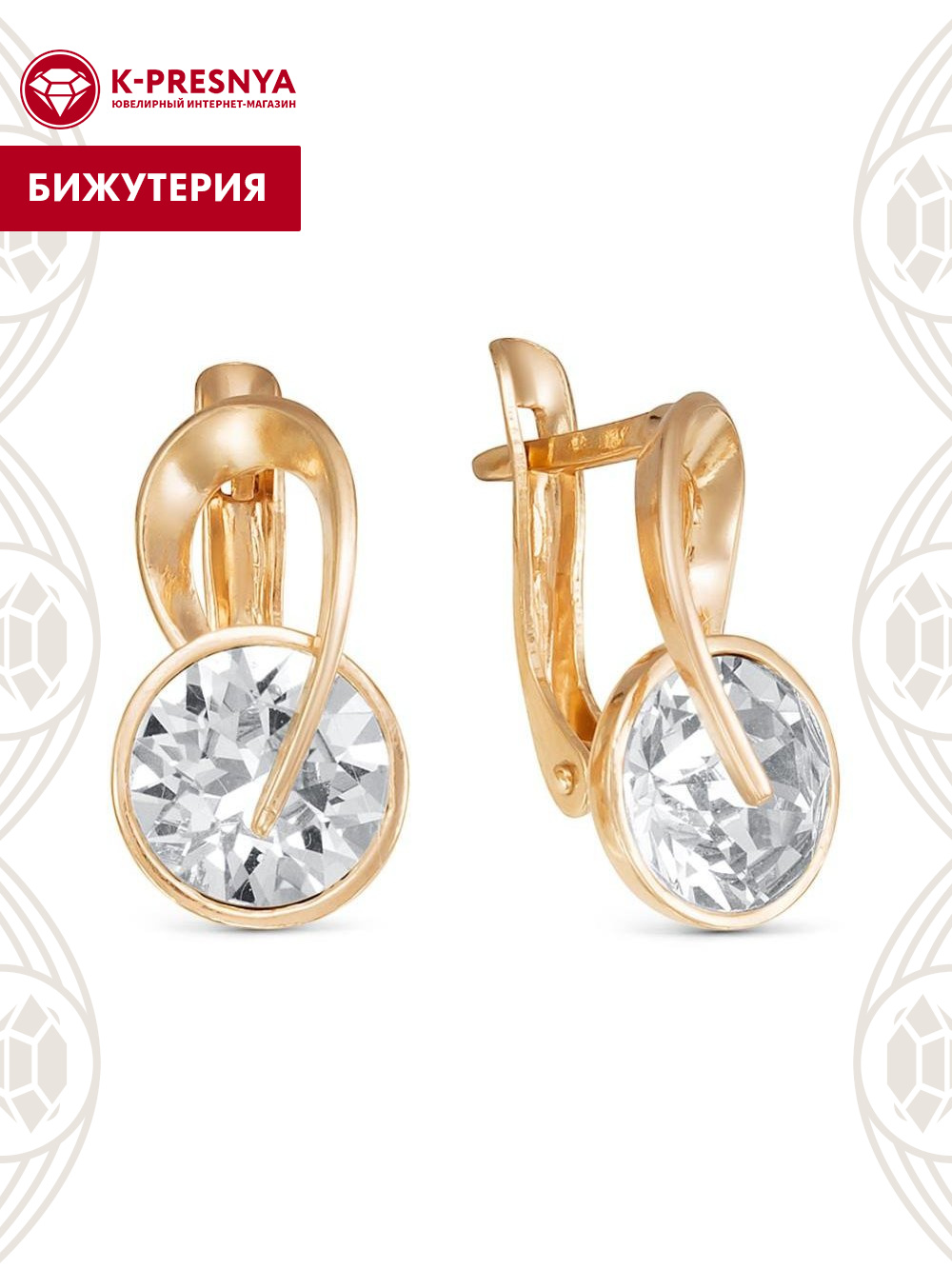 Серьги бижутерия, покрытие - золочение, вставка - стекло ювелирное preciosa