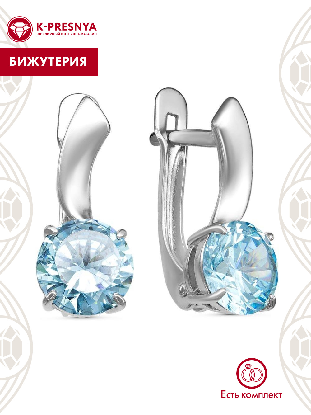 Серьги бижутерия, покрытие - серебрение, вставка - фианит (недрагоценный камень)