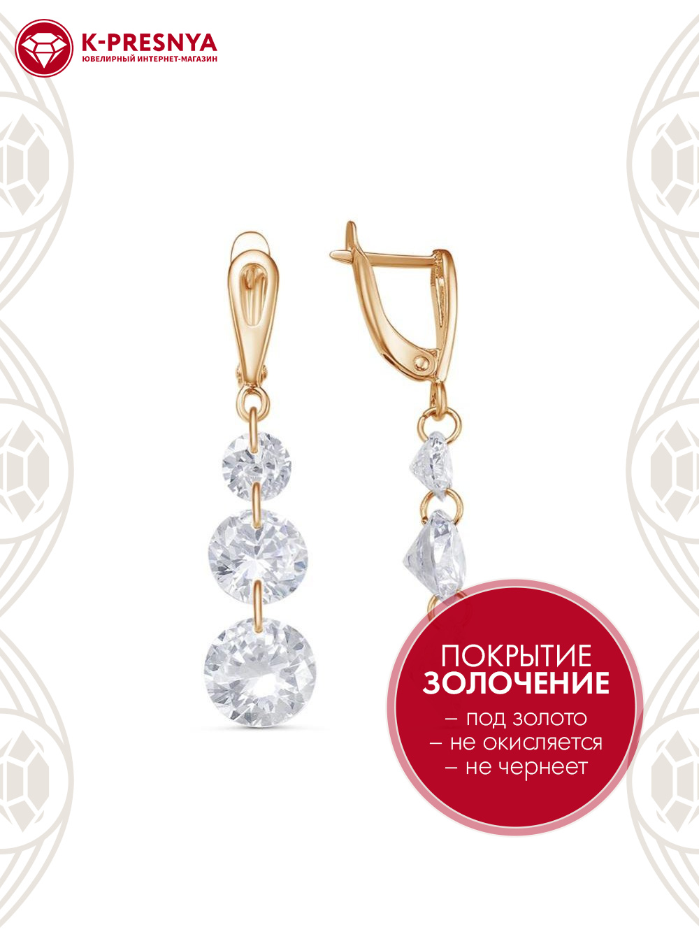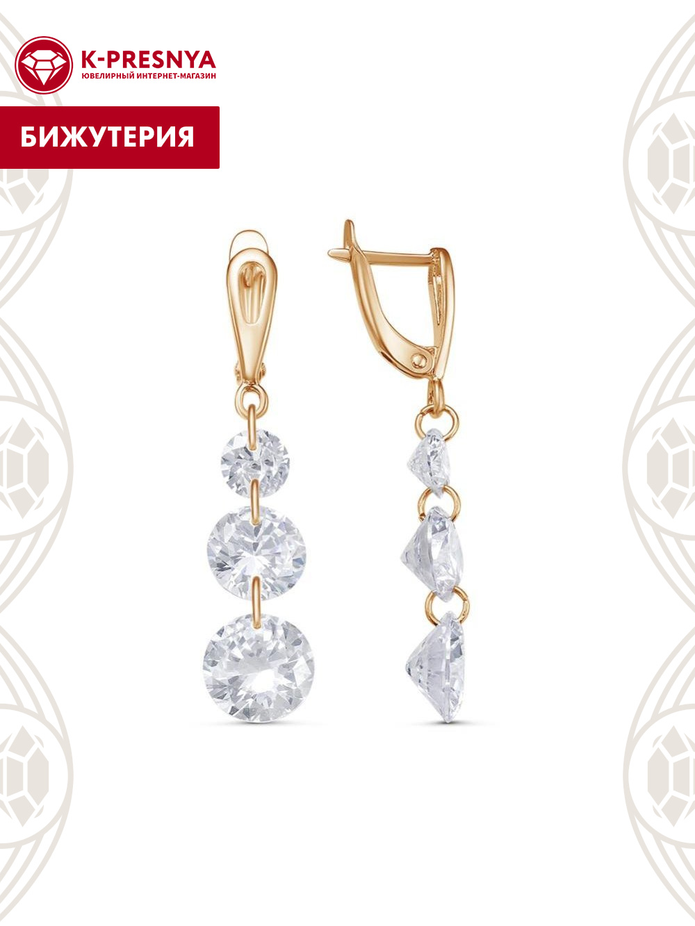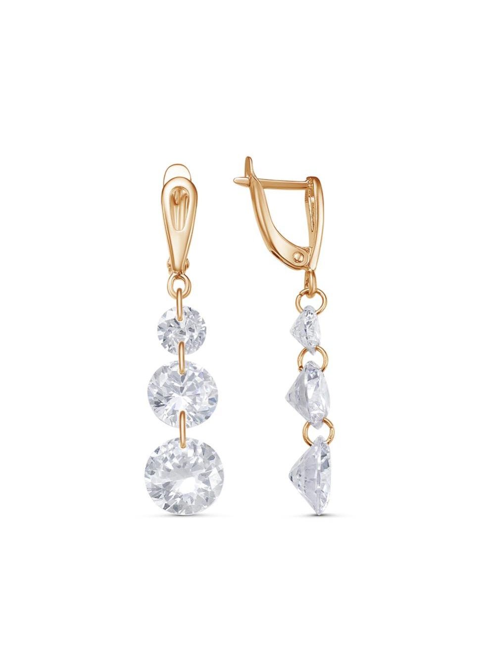 Серьги бижутерия, покрытие - золочение, вставка - фианит (недрагоценный камень)