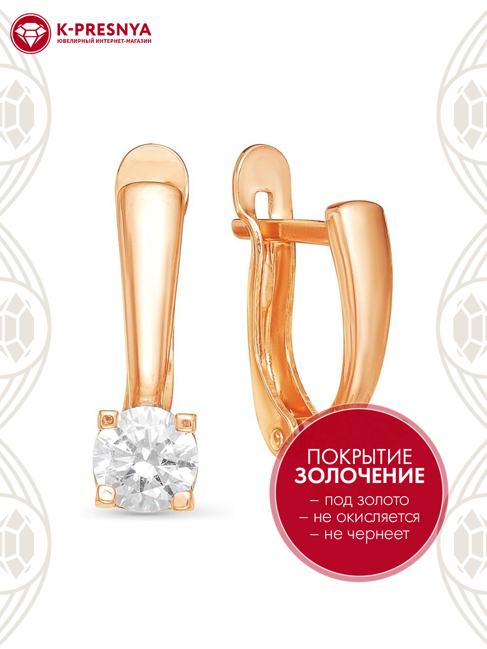 Серьги бижутерия, покрытие - золочение, вставка - фианит (недрагоценный камень)