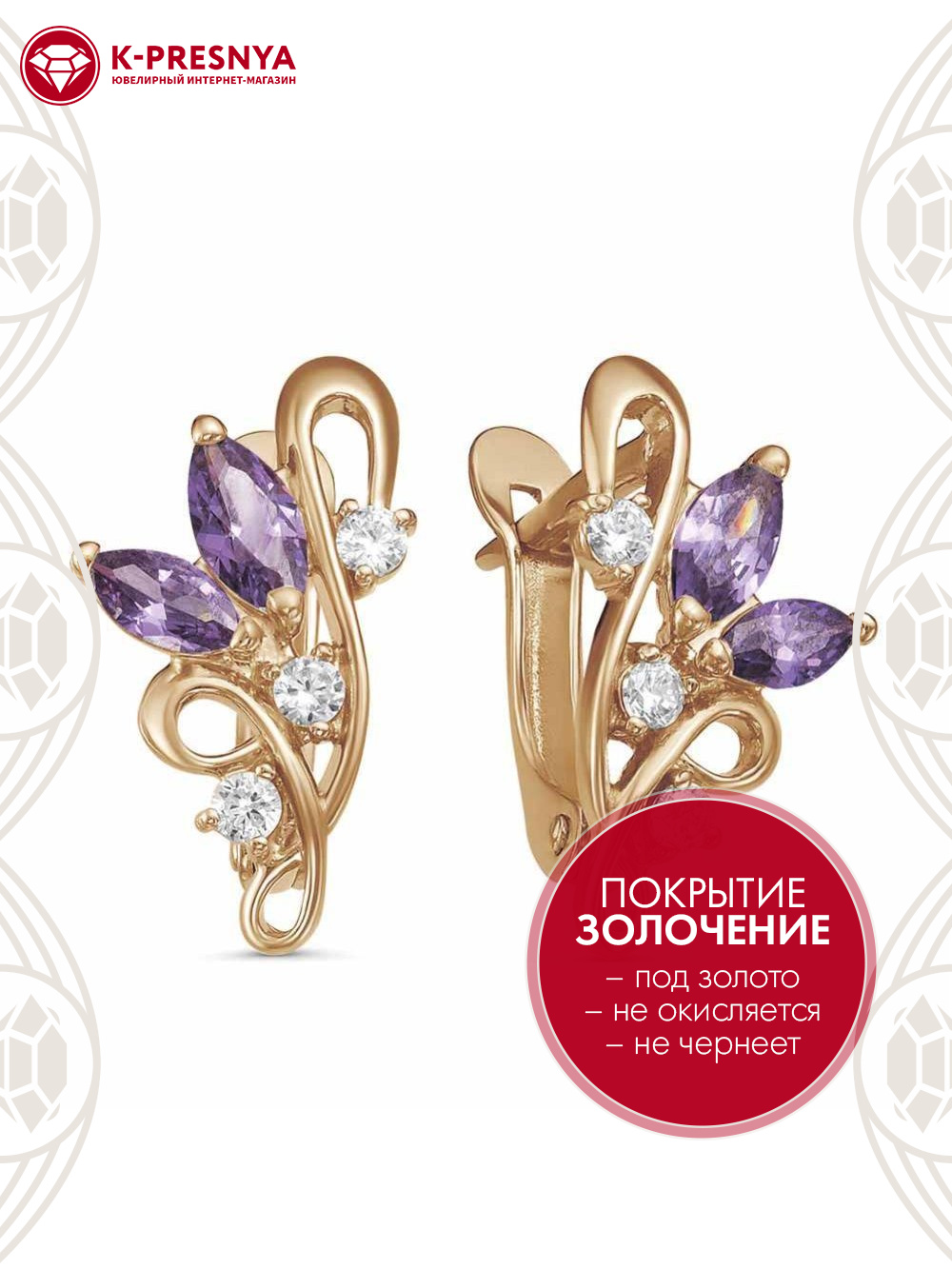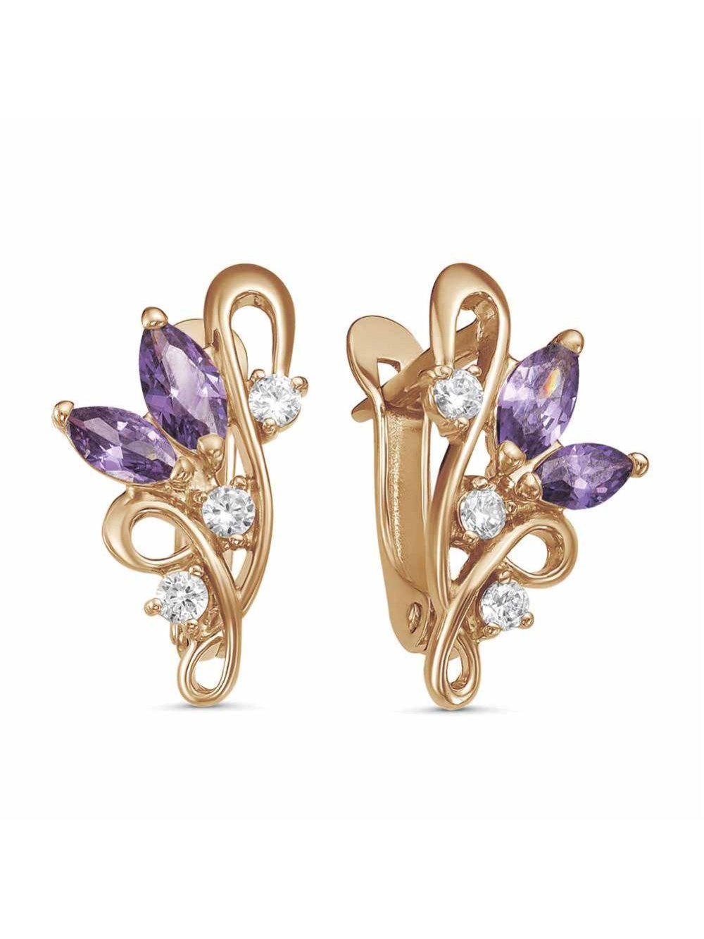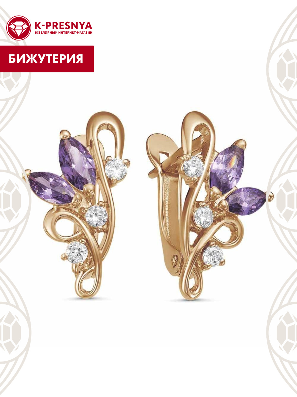 Серьги бижутерия, покрытие - золочение, вставка - фианит (недрагоценный камень)