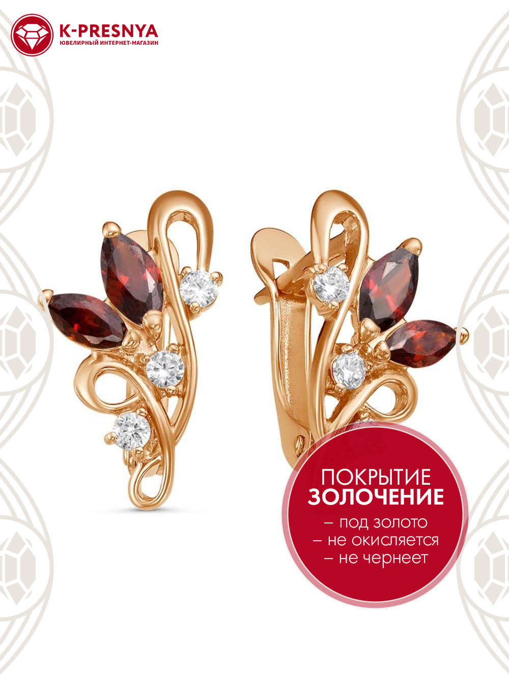 Серьги бижутерия, покрытие - золочение, вставка - фианит (недрагоценный камень)