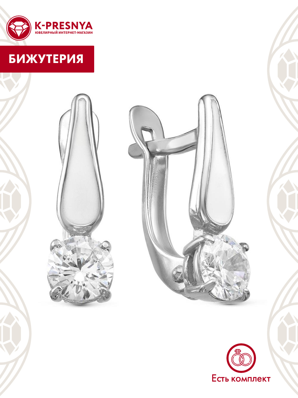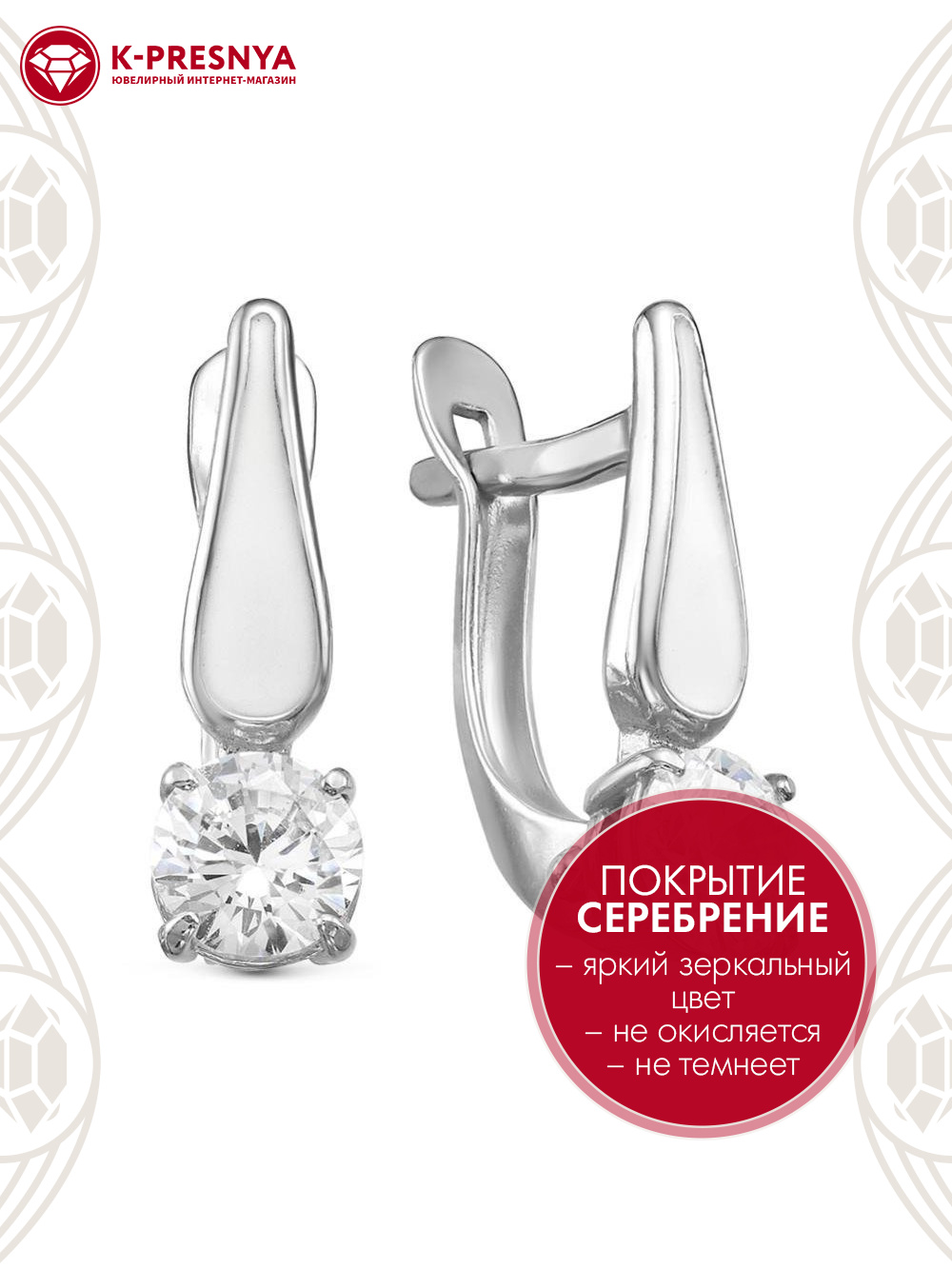 Серьги бижутерия, покрытие - серебрение, отделка - эмаль, вставка - фианит (недрагоценный камень)